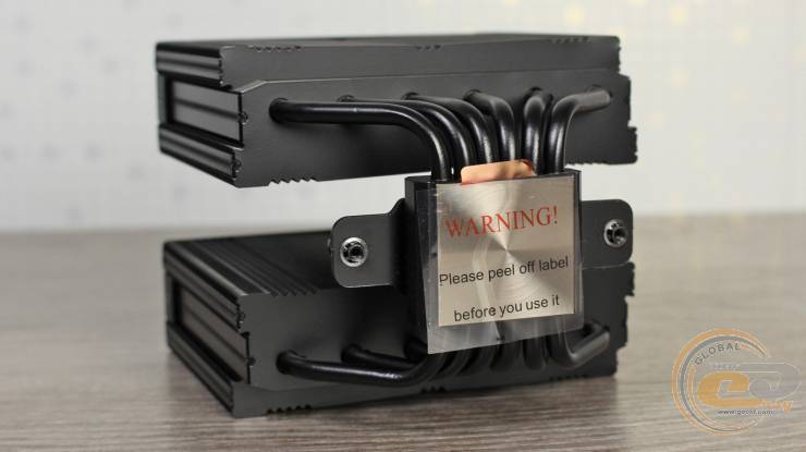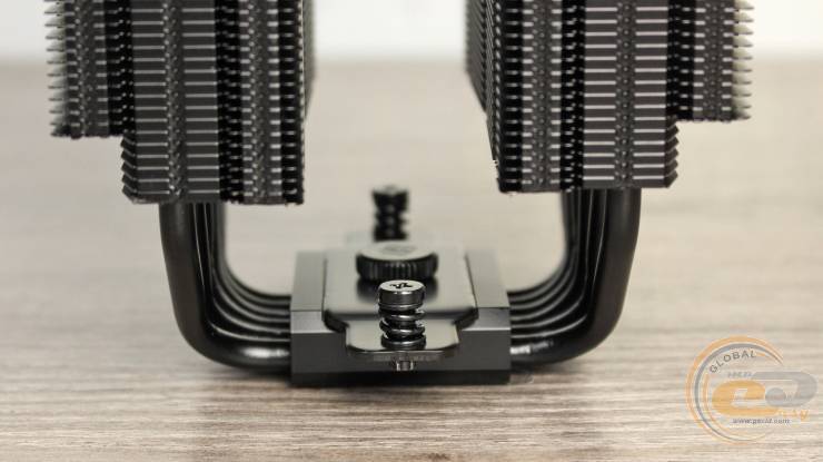 При цьому теплові трубки рівномірно розподілені по ширині обох радіаторних веж. Загальна вага радіатора без вертушок при цьому складає 869 г. Додатково звернемо вашу увагу на те, що виробник припаює теплові трубки до ребер радіатора, а не використовує метод запресування.
