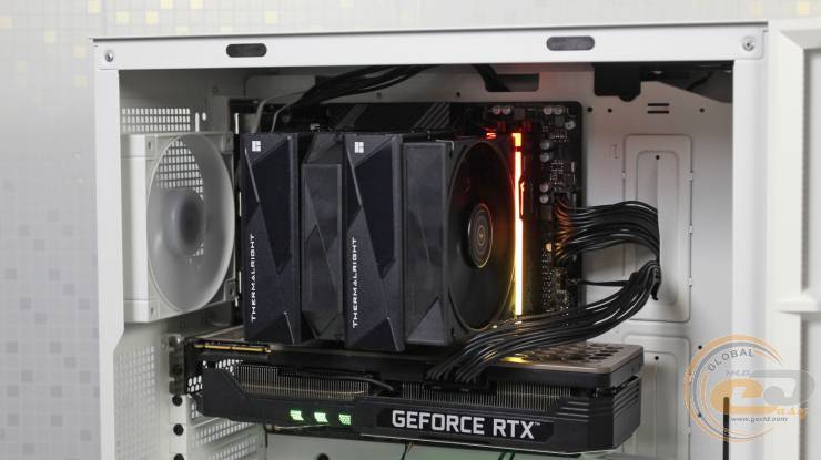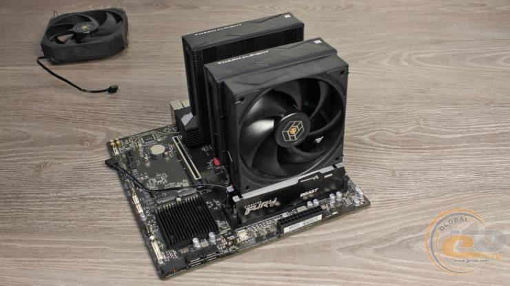 Під час перевірки ефективності охолодження Thermalright Royal Pretor 130 BLACK та його опонентів температура навколишнього середовища становила 23°С. Три 140-мм (на вдув) та один 120-мм (на видув) корпусні вентилятори працювали зі швидкістю 1000 об/хв.