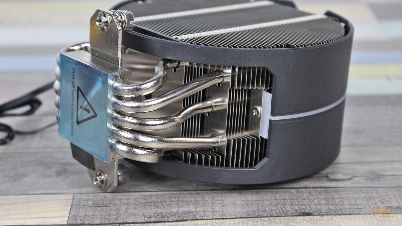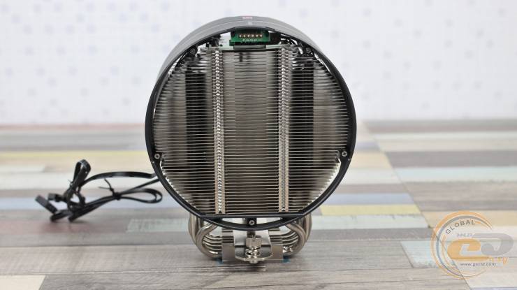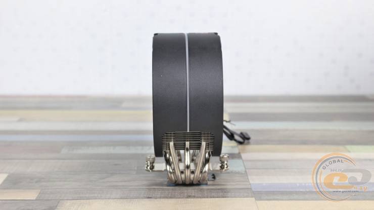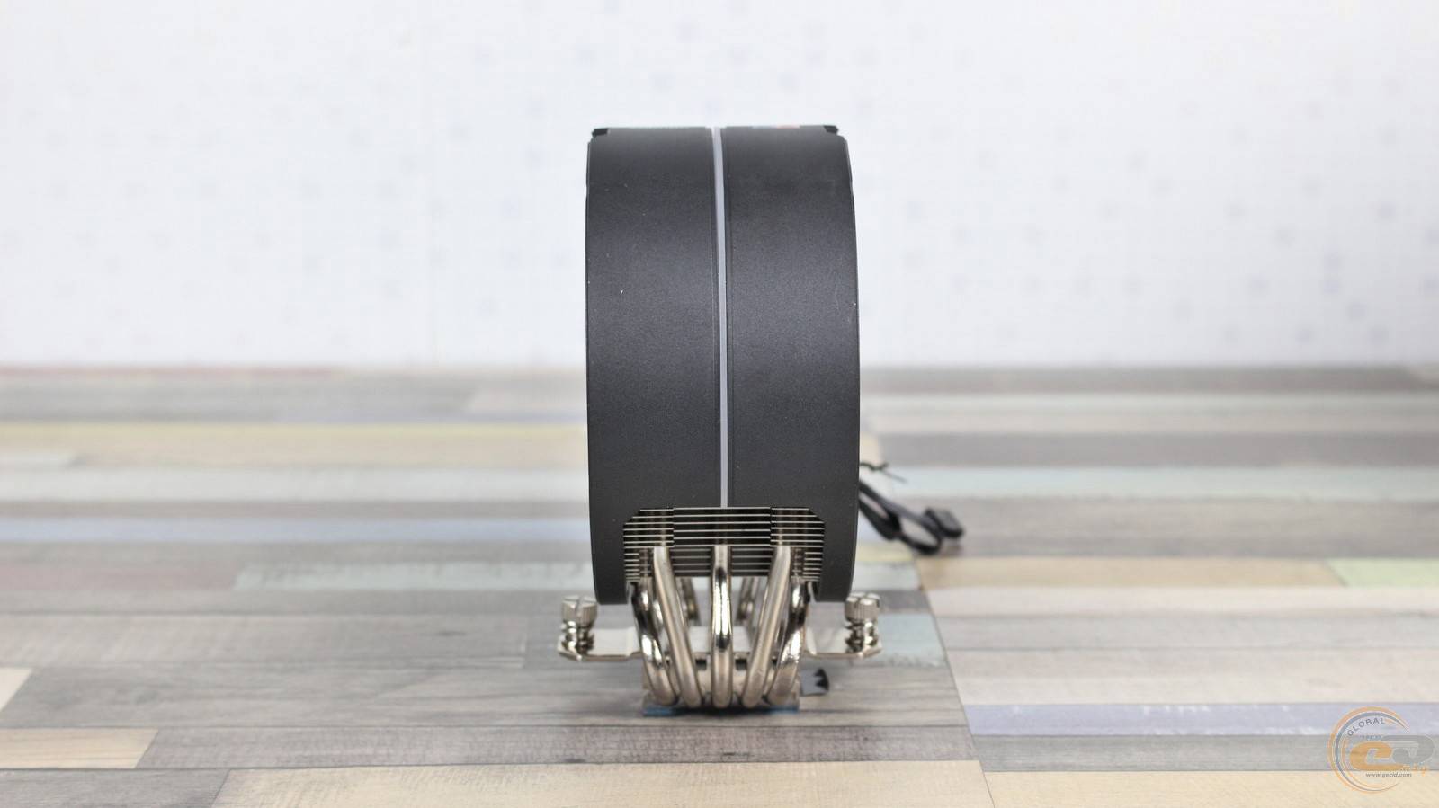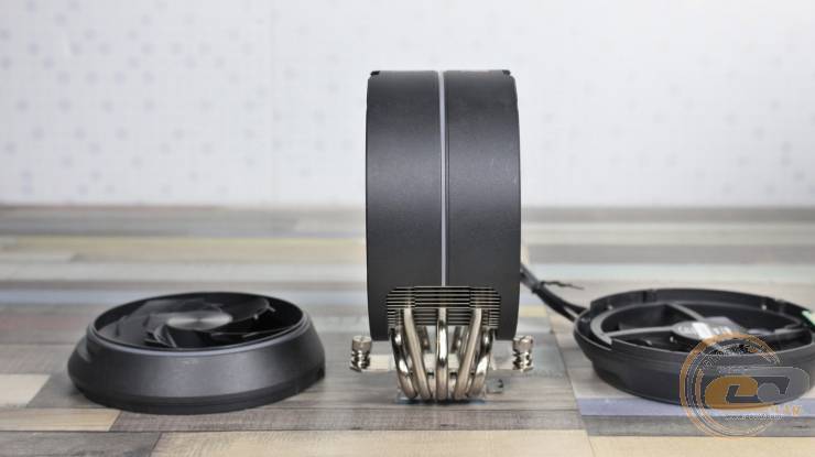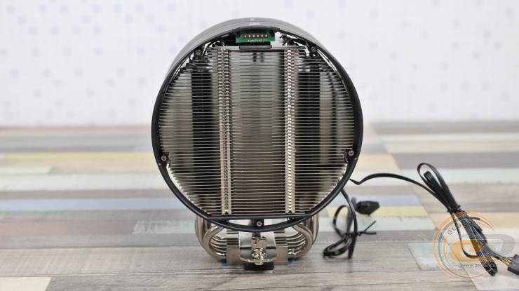 Пластини нанизані на п’ять 6-мм нікельованих мідних теплових трубок. Для підвищення ефективності виробник застосував додаткові вигини трьох із них, що дозволяє рівномірніше розподіляти тепло по радіатору. Зверху конструкцію накриває кожух із матового пластику з легкою шорсткістю та дрібним рифленням. Він фіксується двома гвинтами, додаючи завершеності та акуратності зовнішньому вигляду.