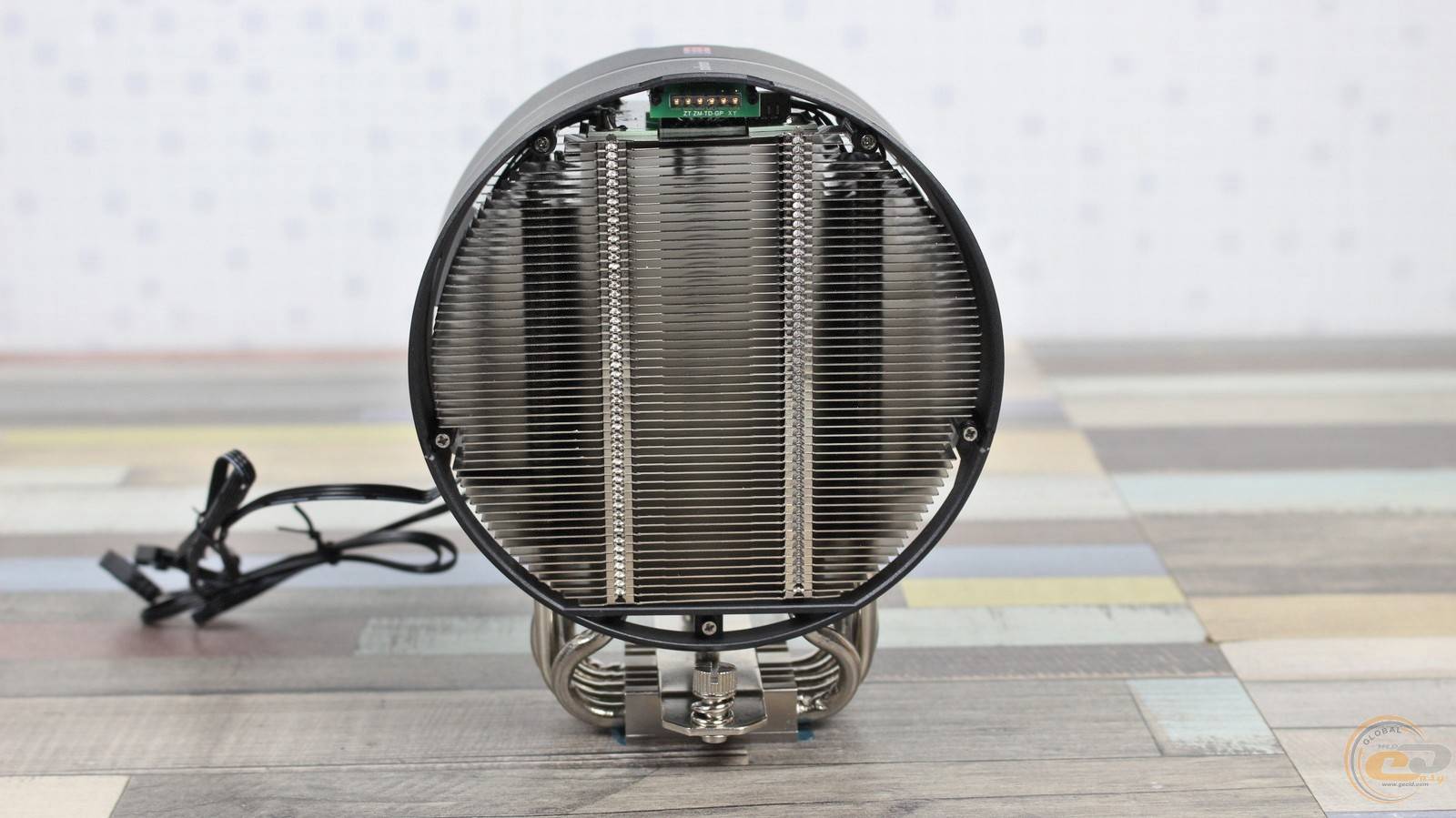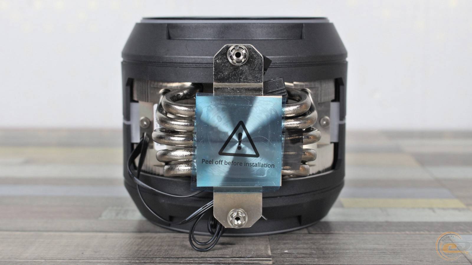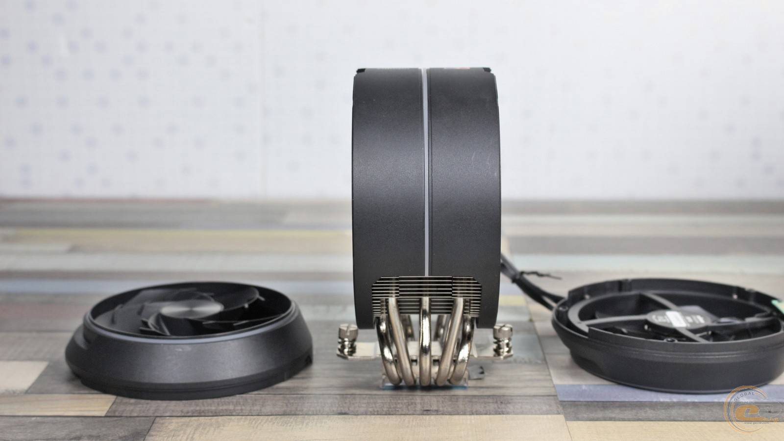 Пластини нанизані на п’ять 6-мм нікельованих мідних теплових трубок. Для підвищення ефективності виробник застосував додаткові вигини трьох із них, що дозволяє рівномірніше розподіляти тепло по радіатору. Зверху конструкцію накриває кожух із матового пластику з легкою шорсткістю та дрібним рифленням. Він фіксується двома гвинтами, додаючи завершеності та акуратності зовнішньому вигляду.