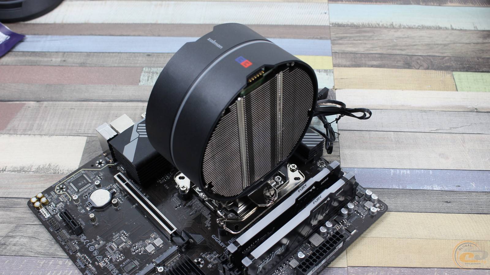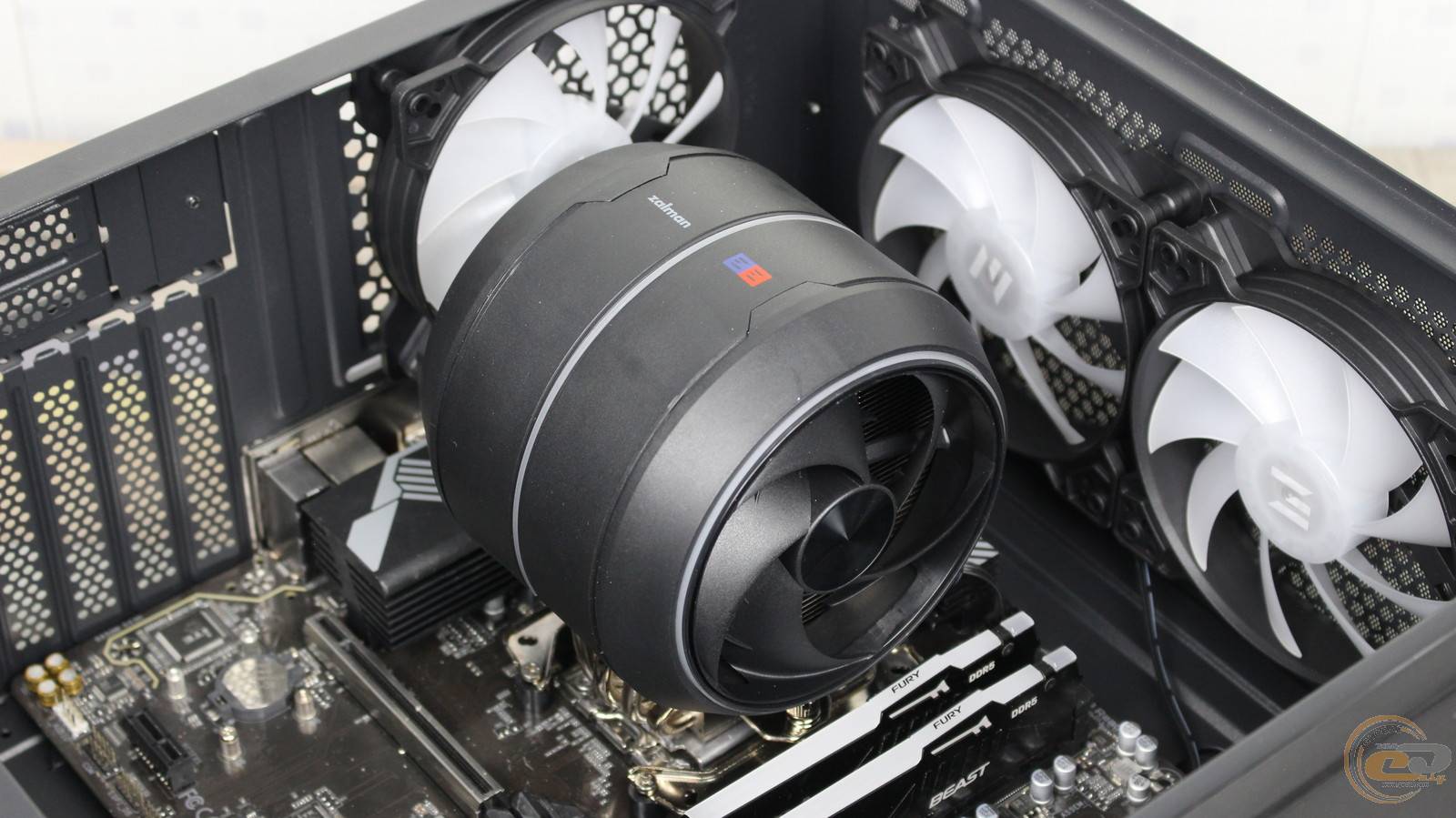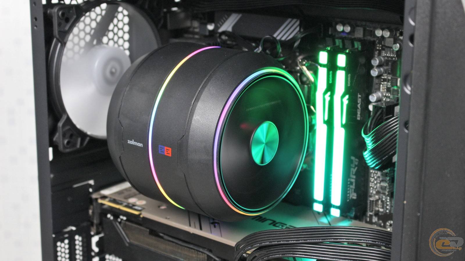 Фінальним кроком є під’єднання кабелів до плати та надзвичайно просте встановлення вентиляторів завдяки вищезгаданому магнітному кріпленню. Хоча ZALMAN ZET 5 BLACK сам по собі не надто габаритний, він перекриває перший DIMM-слот, тож у нього помістяться модулі висотою до 42 мм.