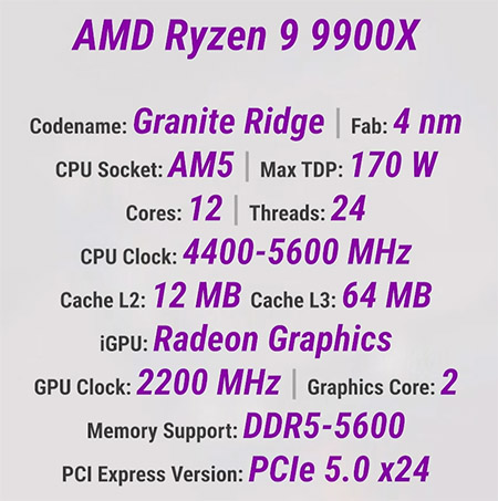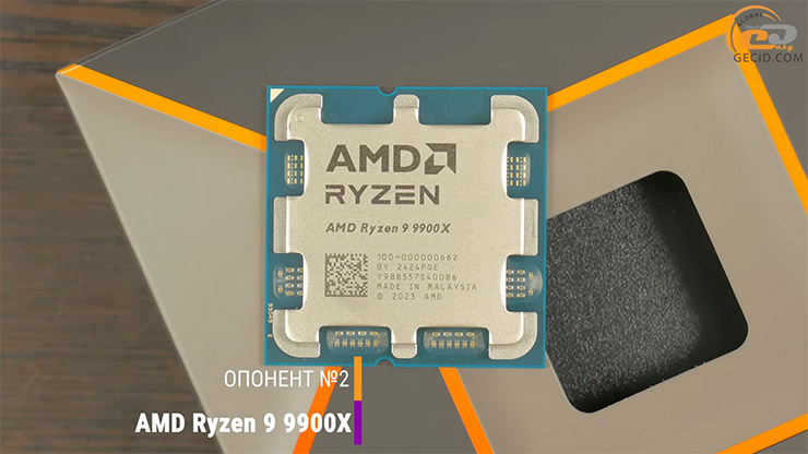 Далі — Ryzen 9 9900X, фактично «близнюк» нашого героя, але без фірмового 3D V-Cache.