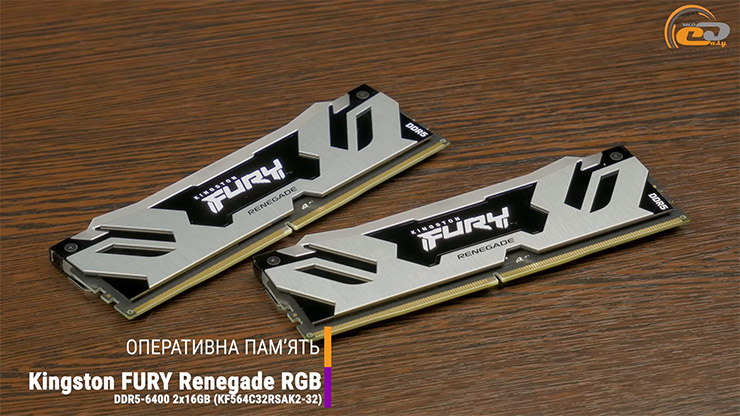 В якості оперативної пам’яті ми використали двомодульний 32-гігабайтний комплект Kingston FURY Renegade DDR5 RGB зі швидкістю 6400 мегатранзакцій за секунду при таймінгах 32-39-39 і напрузі 1,4 В. А для більшої стабільності та сумісності з процесорами AMD 9000-ї серії було застосовано EXPO-профіль на 6000 МТ/с із затримками CL30-36-36, що дозволило контролеру і модулям працювати у режимі 1:1.