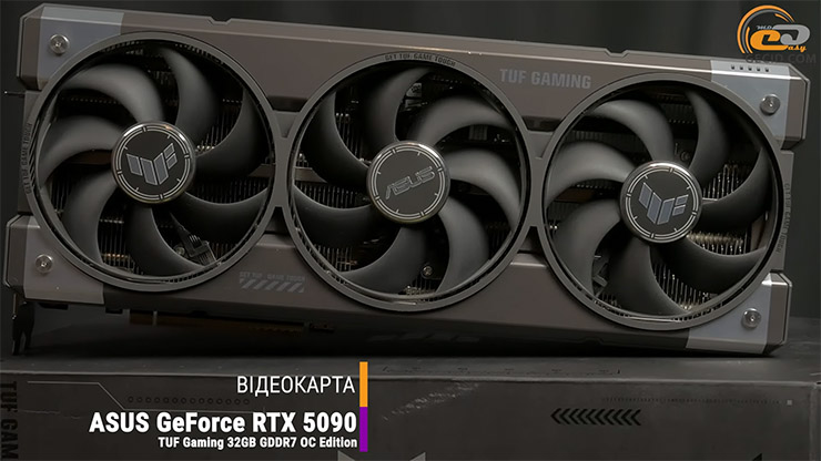 Щоб продуктивність системи точно не впиралася у відеокарту, до стенду ми встановили найпотужніший на сьогодні графічний прискорювач — ASUS TUF Gaming GeForce RTX 5090 32GB GDDR7 OC Edition. Це топове рішення сімейства, що має неймовірні показники продуктивності, а саме ця модель підсилена масивною системою охолодження, покращеною елементною базою та заводським розгоном, який дозволяє відеокарті працювати на підвищених частотах і максимально розкрити потенціал сучасних CPU у тому числа з трасуванням променів.