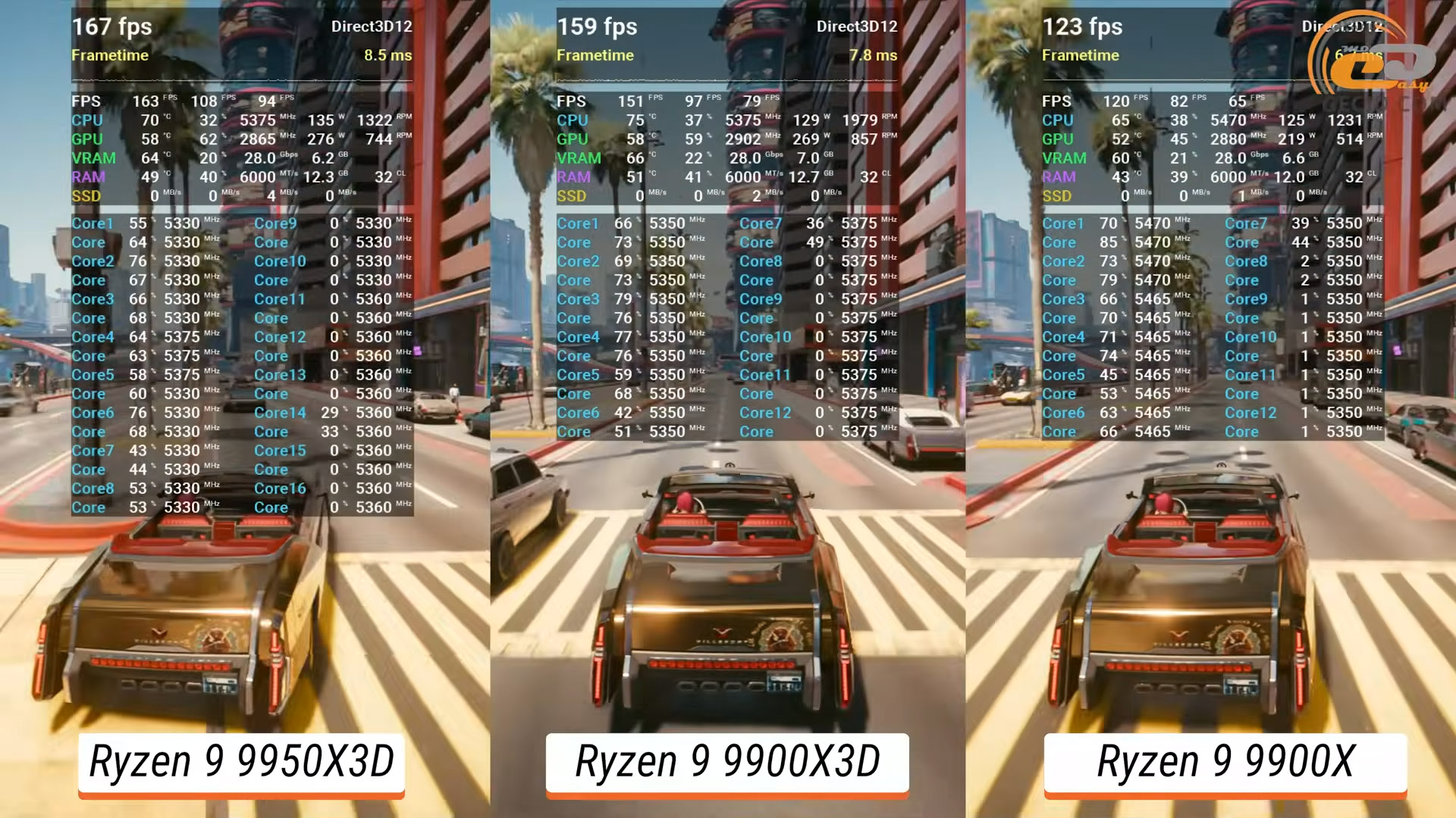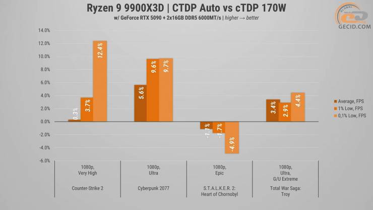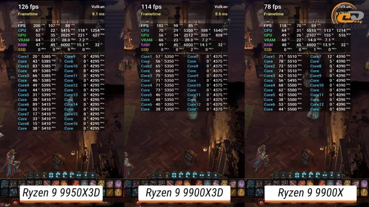 Водночас з’явився відрив навіть від флагмана 9950X3D, який трохи заплутався у балансі навантаження, хоча й мінімальний, тому це практично не відчується у грі.