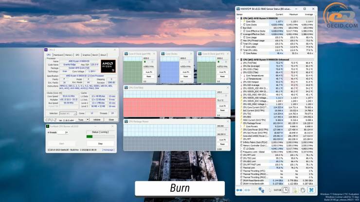 При навантаженні у FurMark можемо побачити вже коло 70 градусів на чиплетах, а робочі частоти майже досягли 5000 МГц.