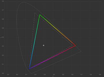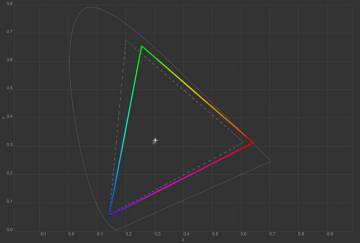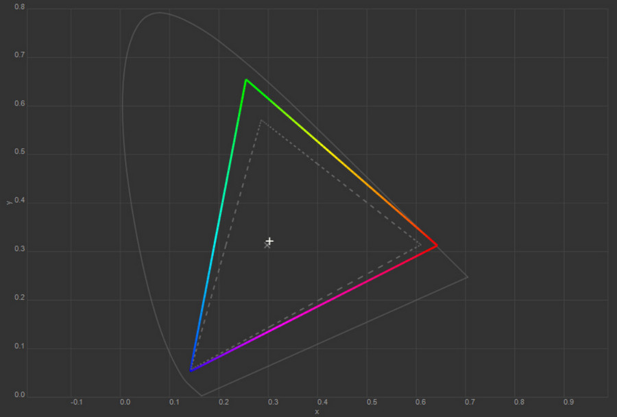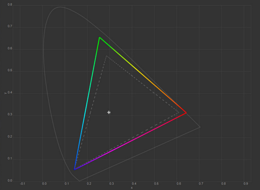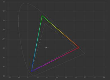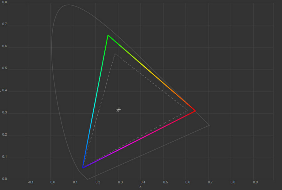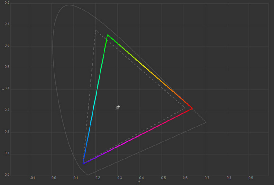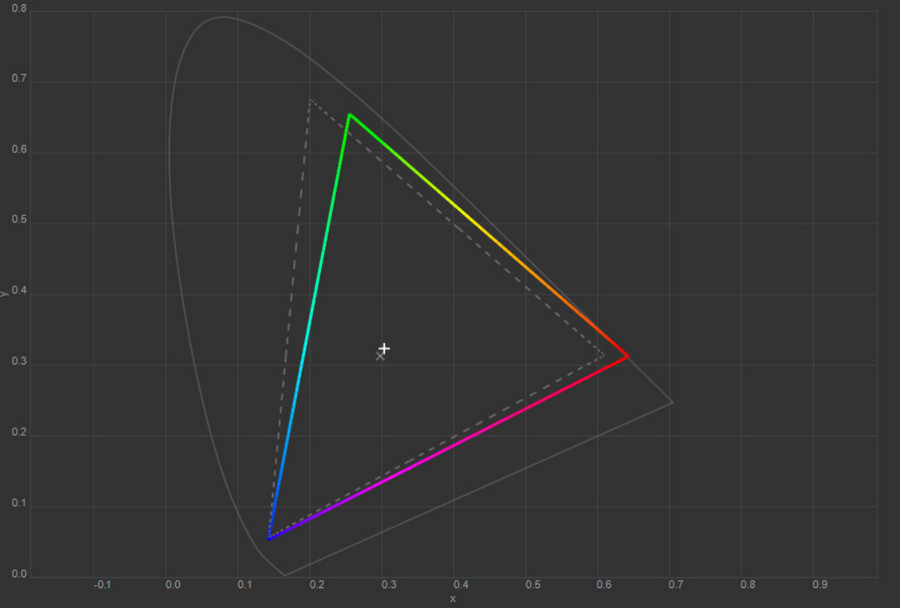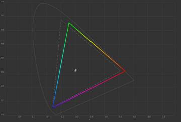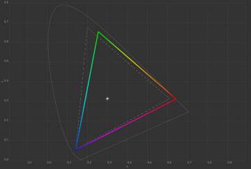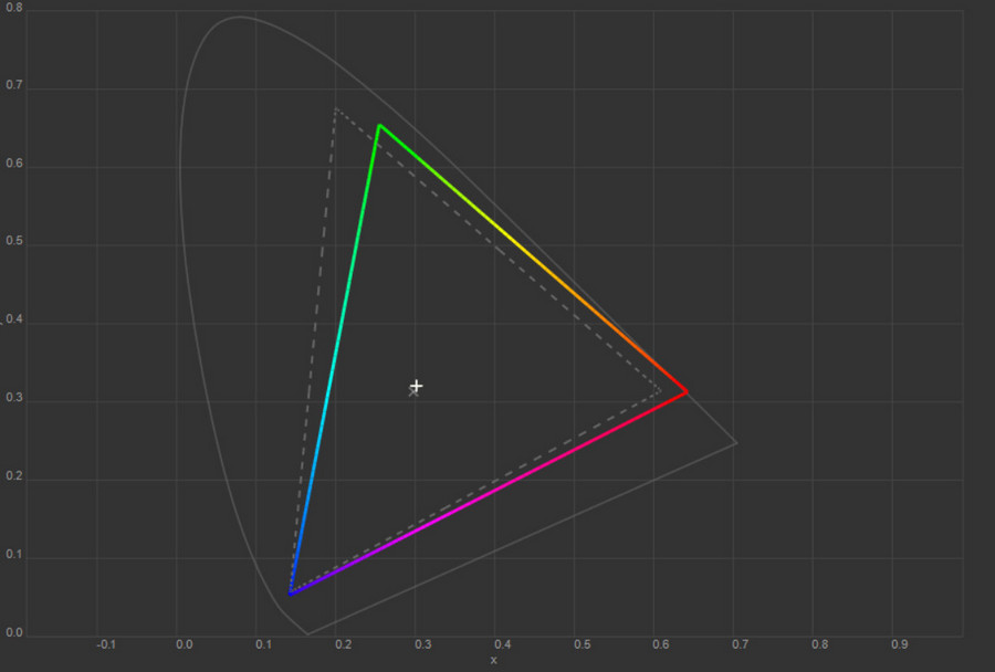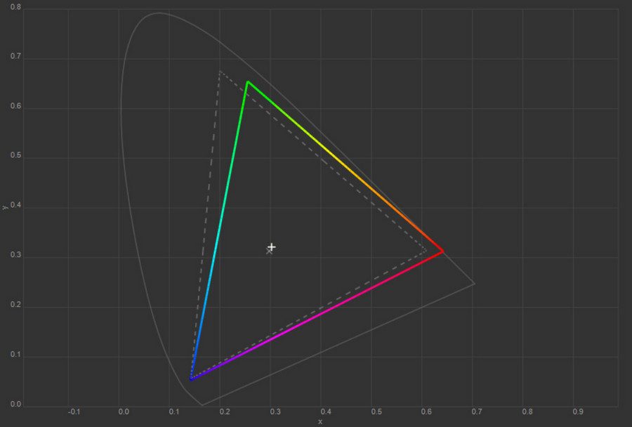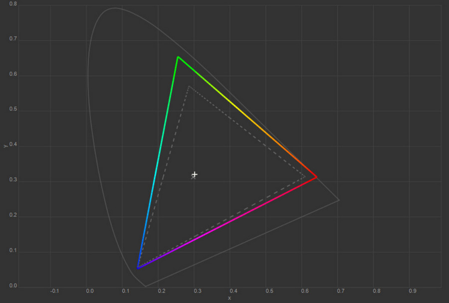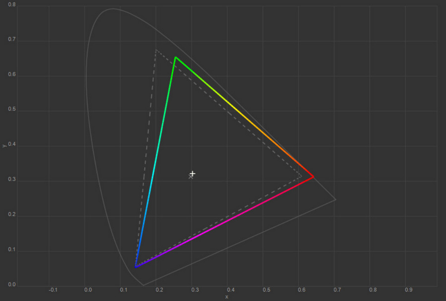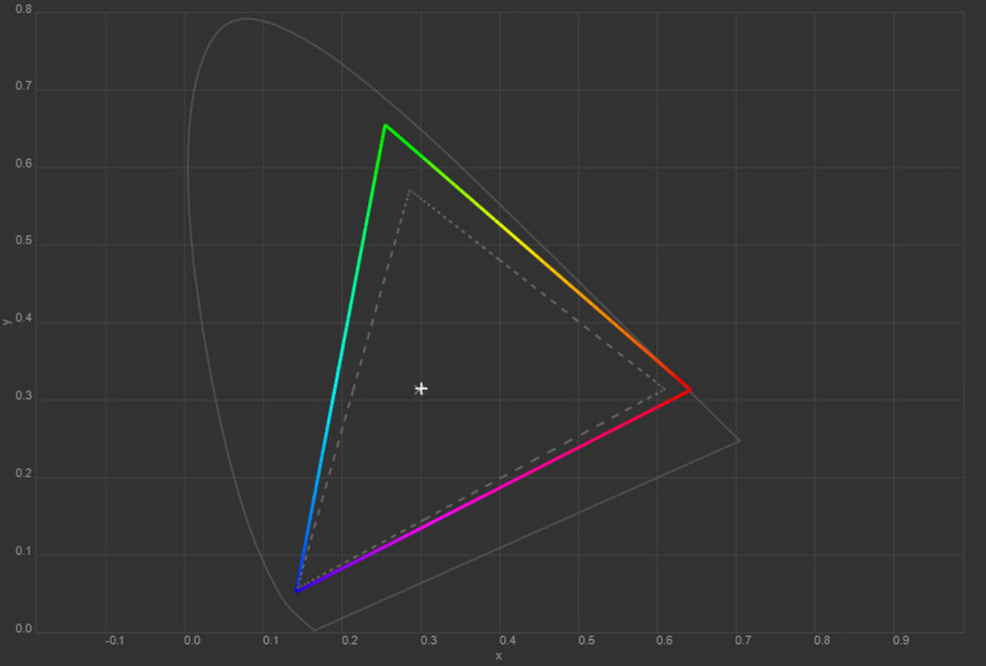 Водночас, рівні RGB стали трохи рівномірнішими, без глибоких провалів, а перенасичення збереглося — об’єм sRGB перевищує 146%. Це локальні покращення, які не змінюють загальної картини: IPS-матриця має апаратні обмеження, і заводський профіль «Eco» вже забезпечує високу точність без потреби в LUT-корекції.
