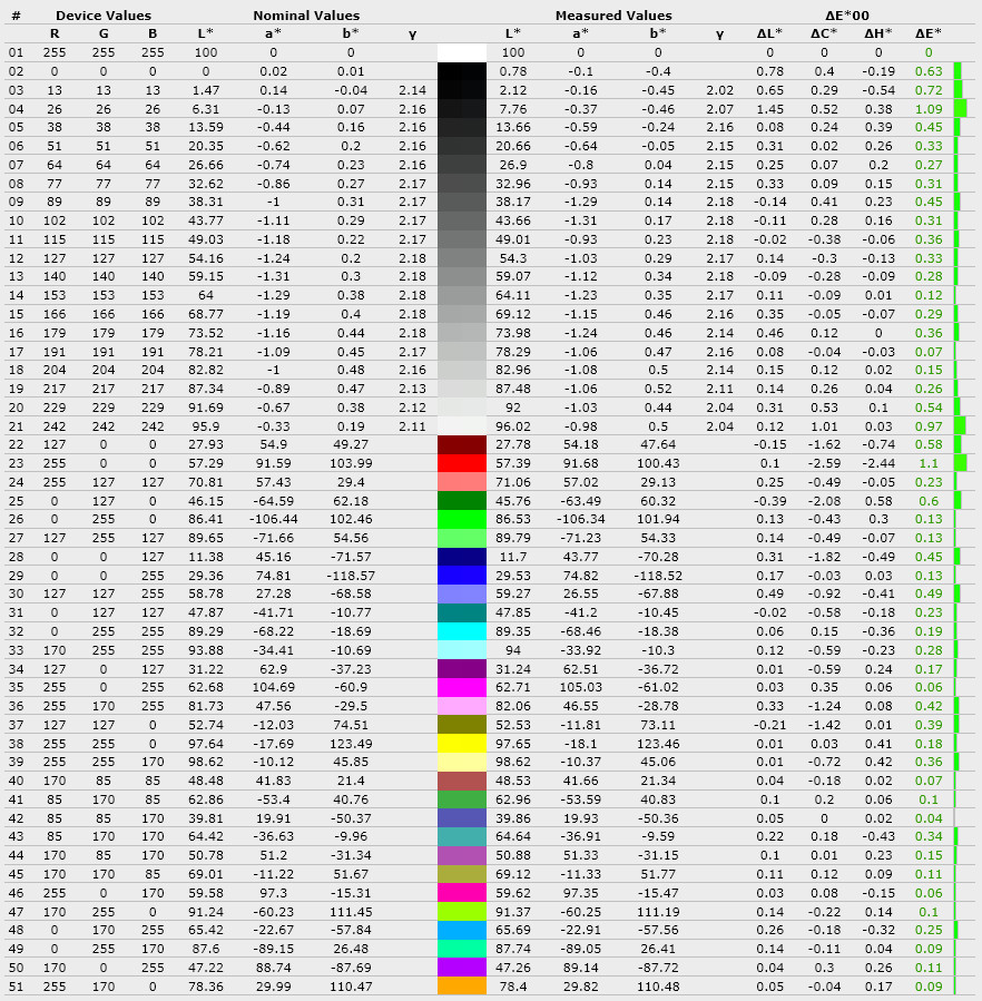 Загалом, калібрування дало частковий виграш. Точність передачі кольору трохи знизилася, але залишилася на дуже високому рівні. Натомість покращилися гама, баланс каналів, температура білого та енергоспоживання. Профіль «Eco» навіть без калібрування демонструє зразкову поведінку, а після корекції — повністю готовий до повноцінної роботи з кольором у просторі sRGB.
