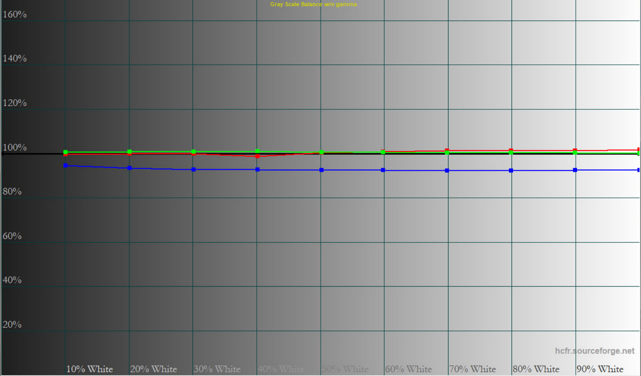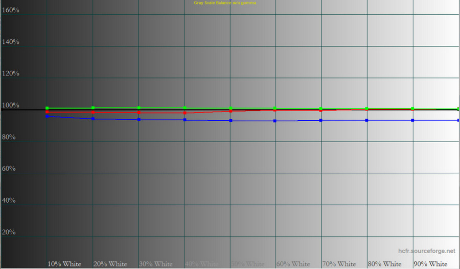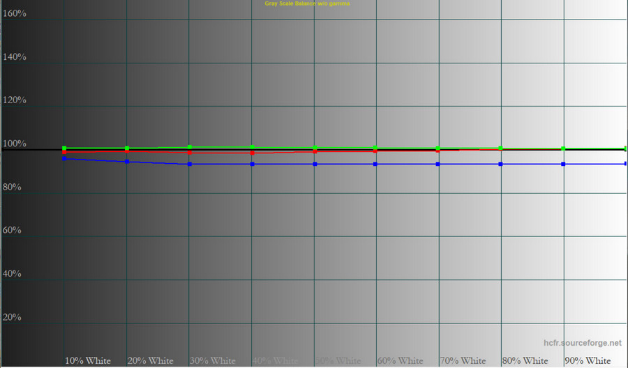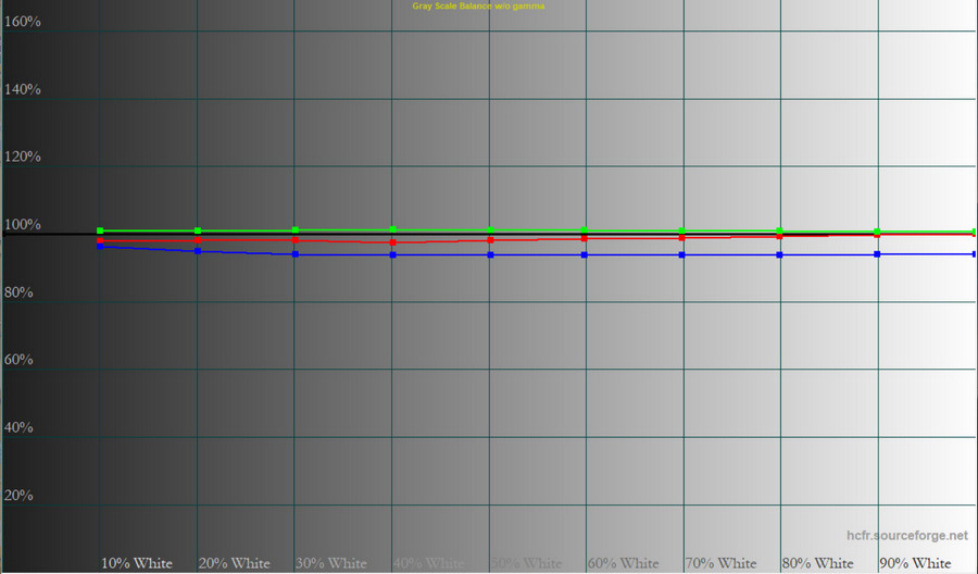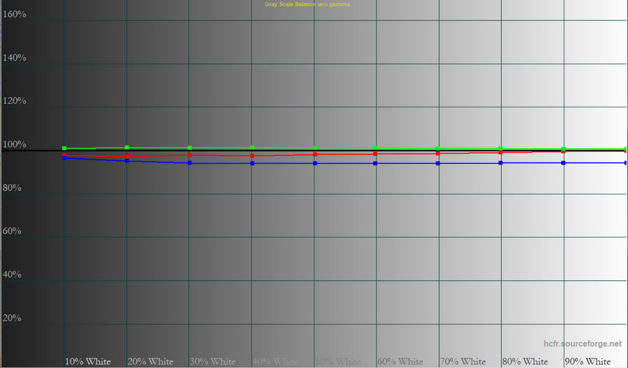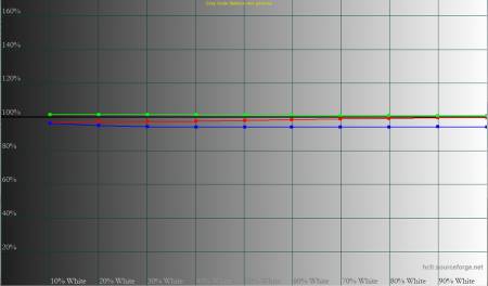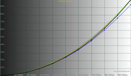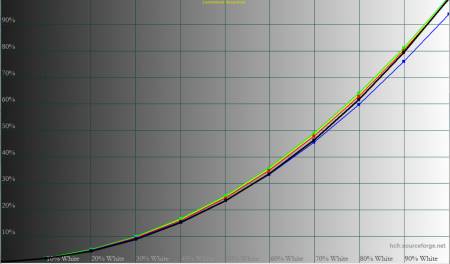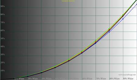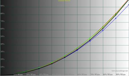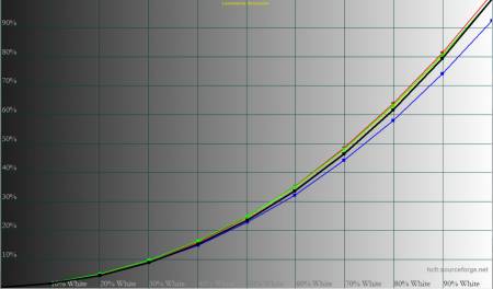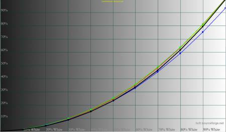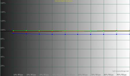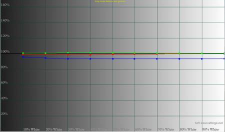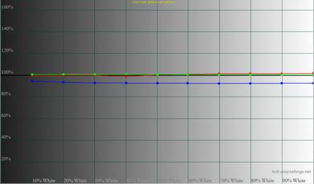 На нашу думку, частково така стабільність може бути пов’язана з тим, що монітор працює в енергозберігаючому режимі — з помірною яскравістю, яка сприяє точнішій роботі матриці в середньотоновому діапазоні.
