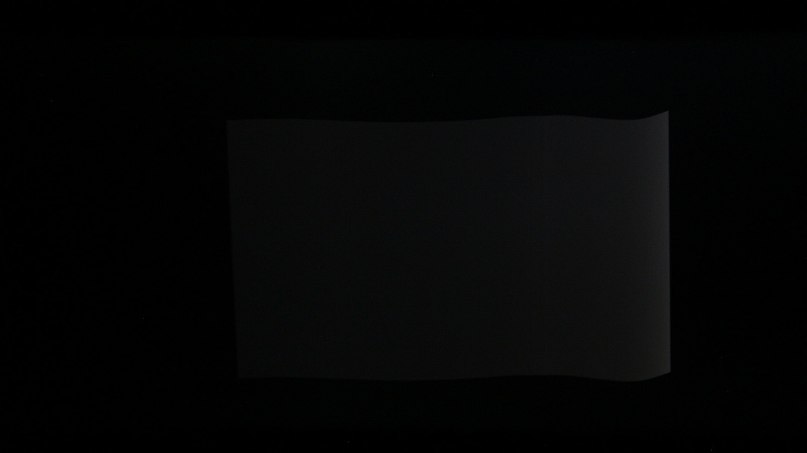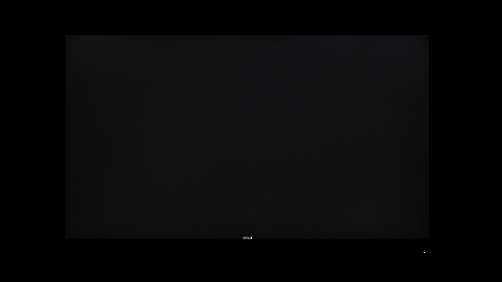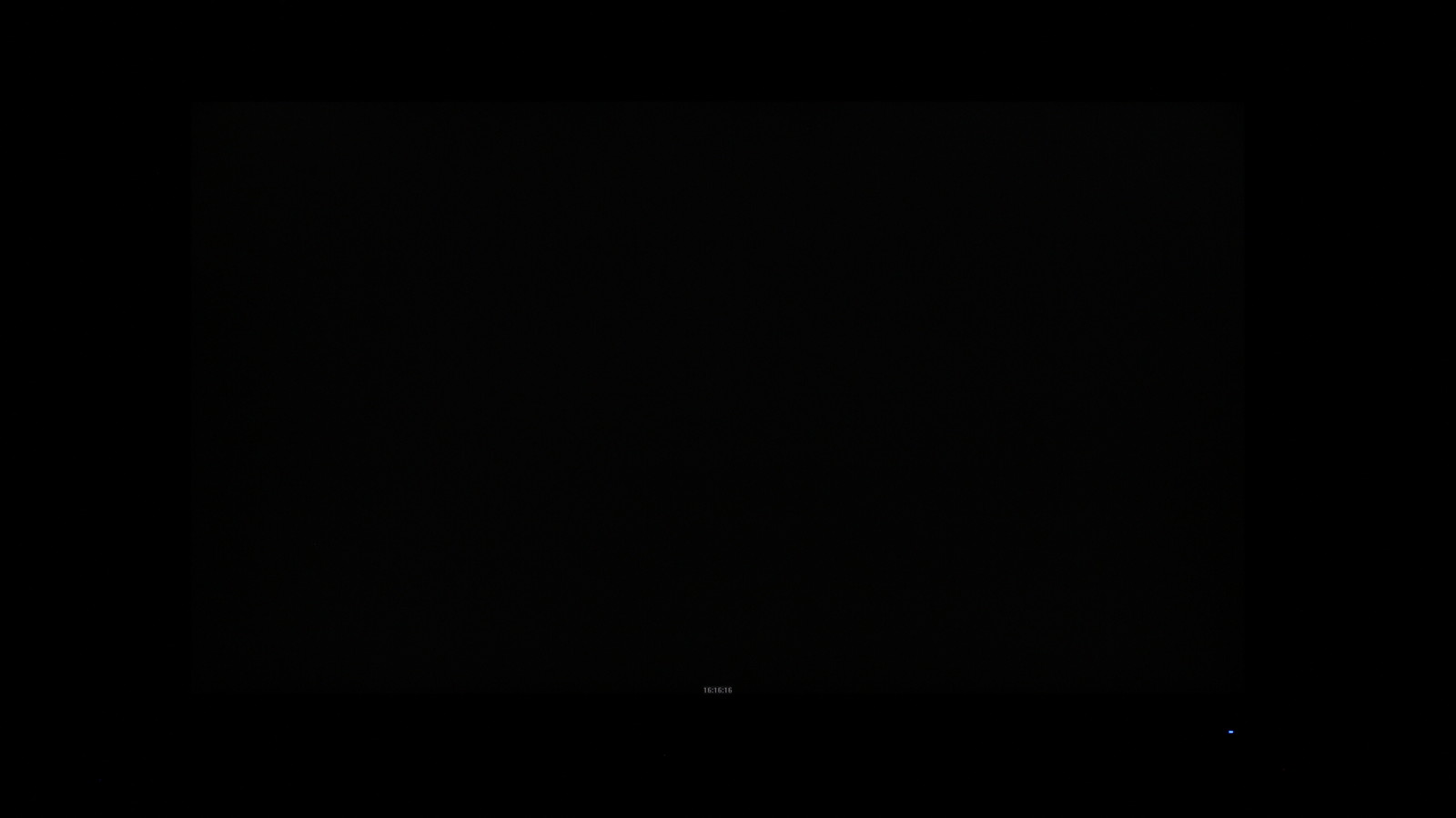 Засвіти на чорному екрані проявляються лише в повній темряві. На першому фото — реальна візуальна картина: фон рівномірно темний, без локальних підсвічувань чи світлих плям. Друге фото — знімок із довгою витримкою (1,6 с), який підсилює контраст і виводить на поверхню найменші відхилення, але навіть у такому режимі не фіксується жодних критичних витоків світла. У реальних умовах засвіти практично відсутні й не впливають на комфорт перегляду темних сцен.