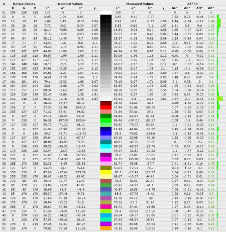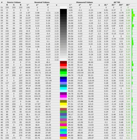Діаграма відхилення основних кольорів та відтінків від еталонів у відкаліброваному профілі