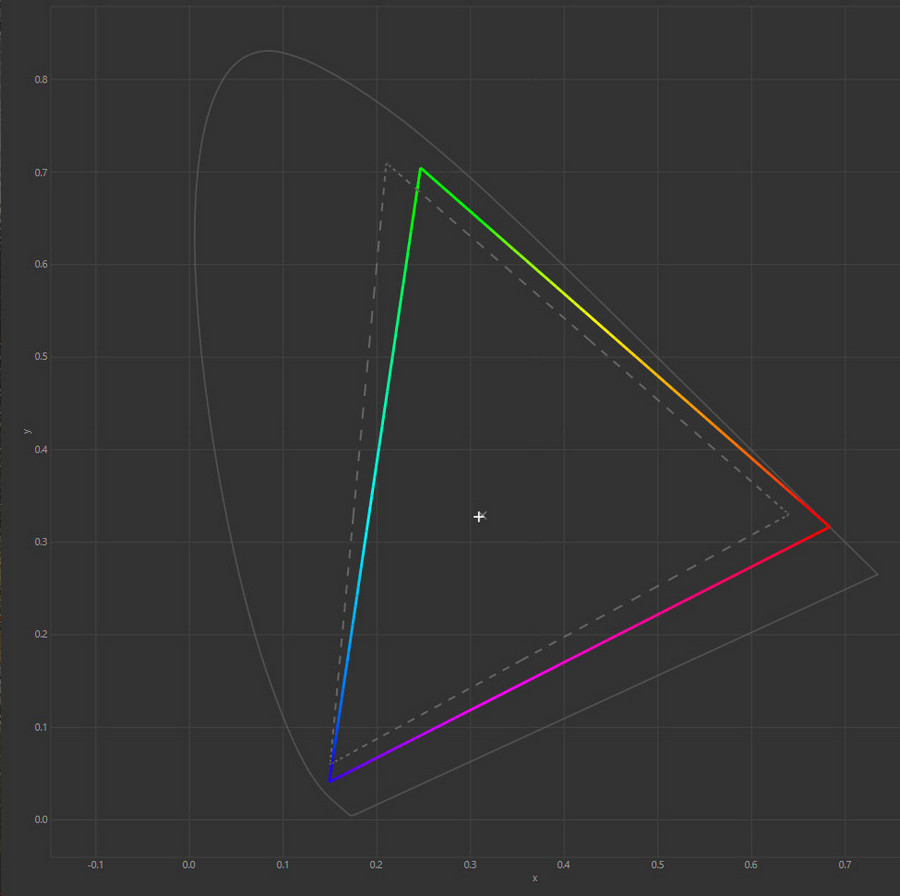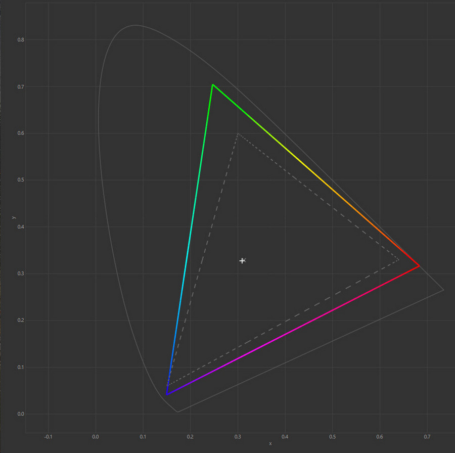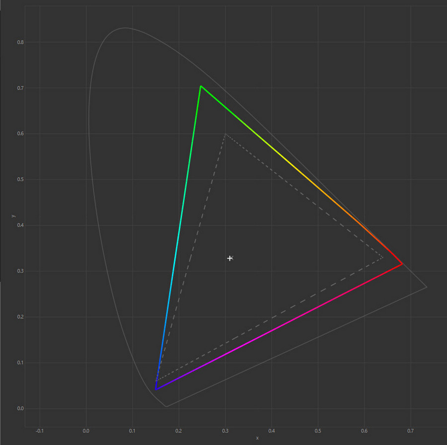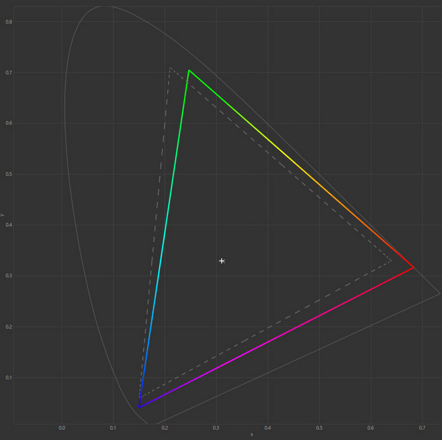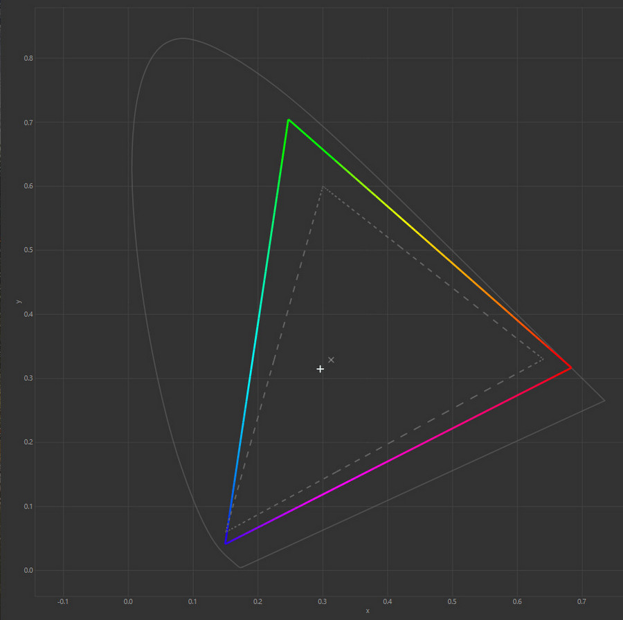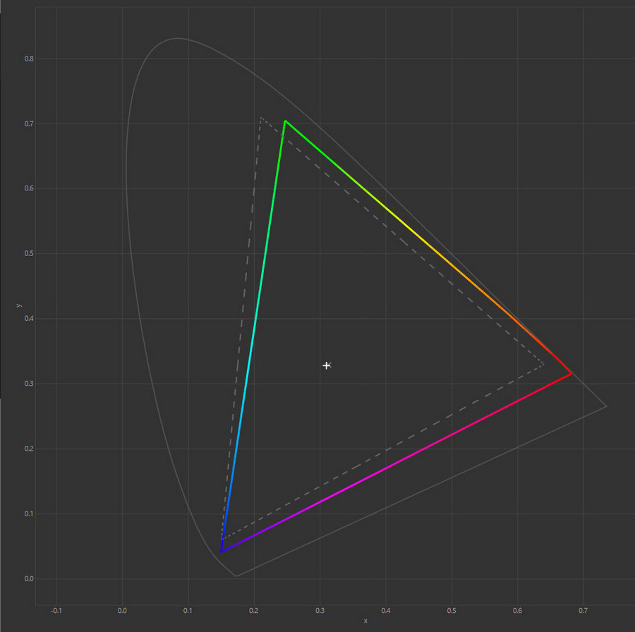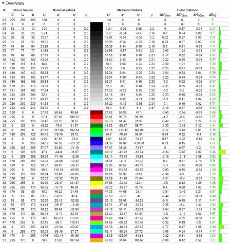 Точність кольорів суттєво погіршилась, хоча й лишилась у межах допусків: середнє ∆E зросло майже удвічі, а максимальне перевищило 2. Для ігор чи мультимедіа це не критично, але для роботи з графікою заводський «User» лишається точнішим.