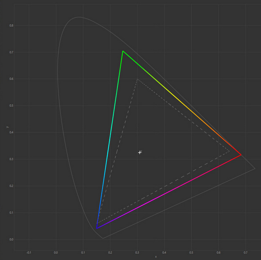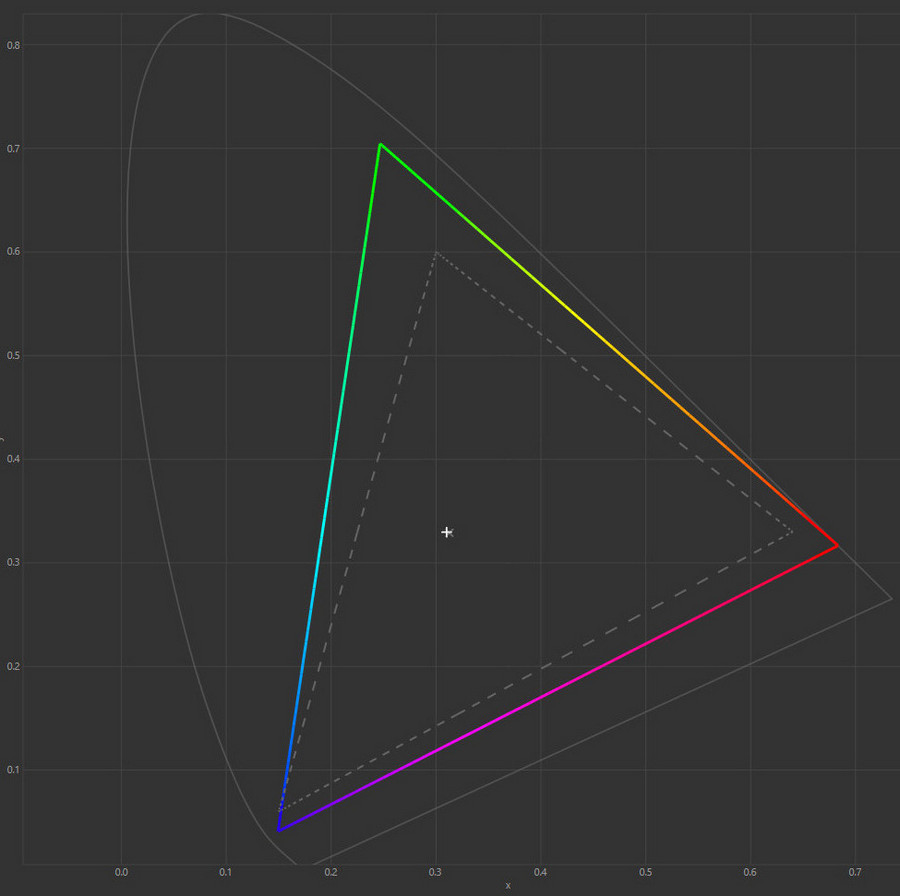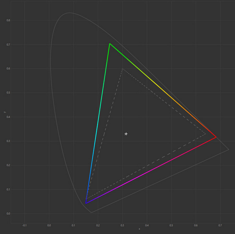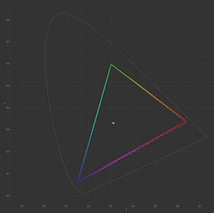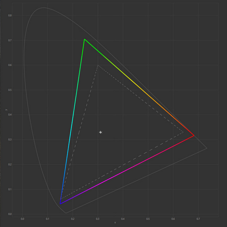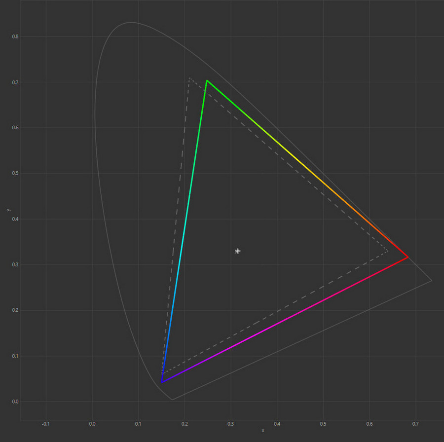 Точність кольорів суттєво погіршилась, хоча й лишилась у межах допусків: середнє ∆E зросло майже удвічі, а максимальне перевищило 2. Для ігор чи мультимедіа це не критично, але для роботи з графікою заводський «User» лишається точнішим.