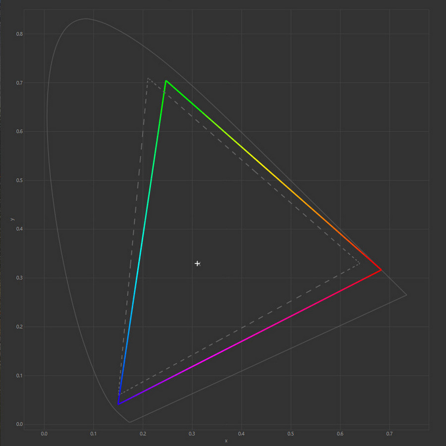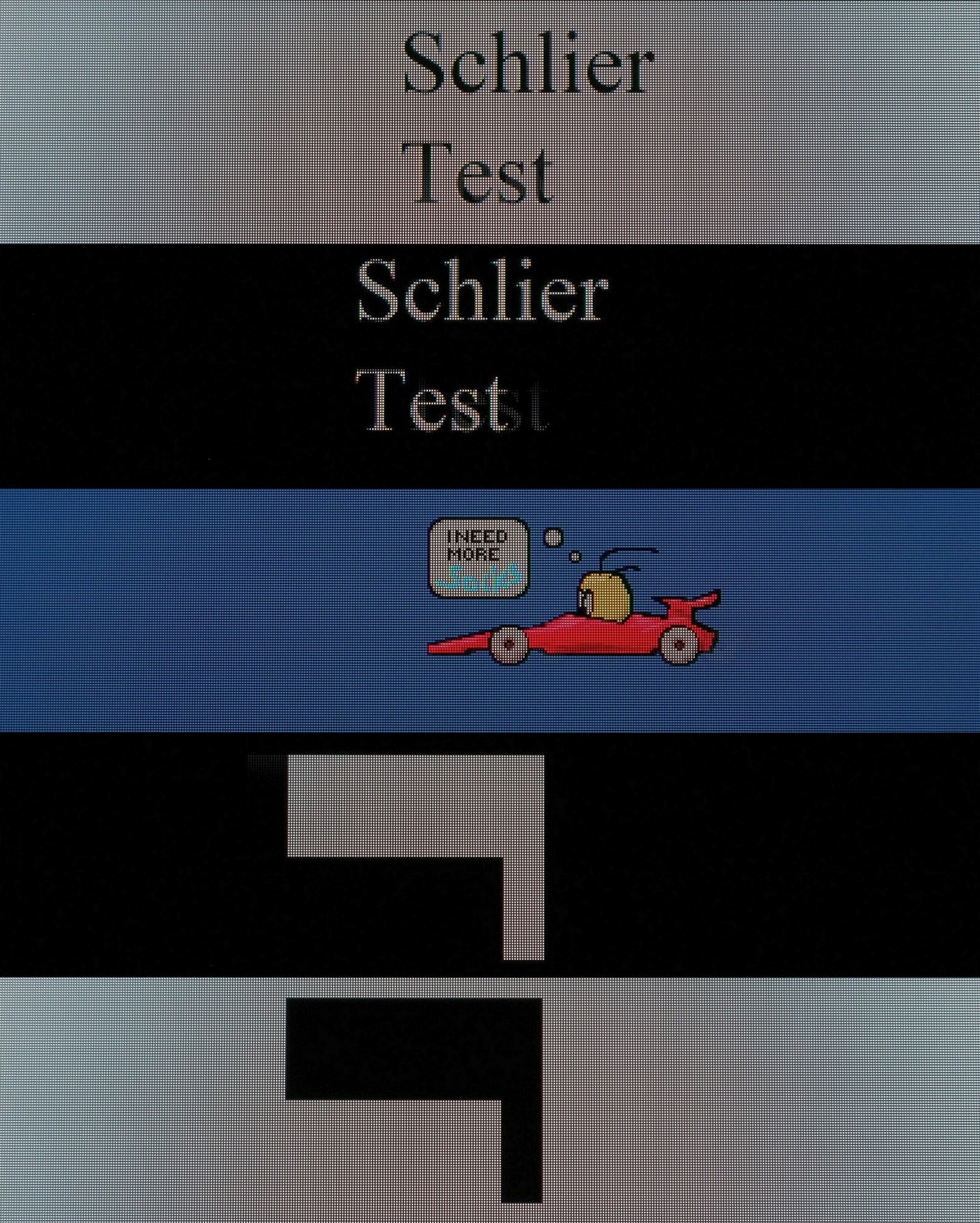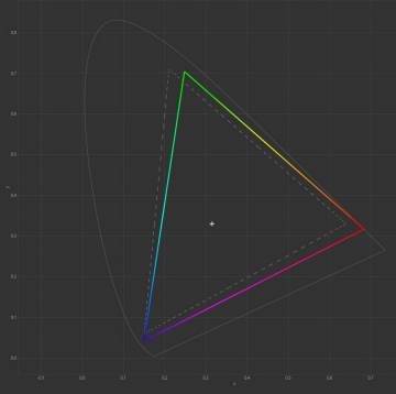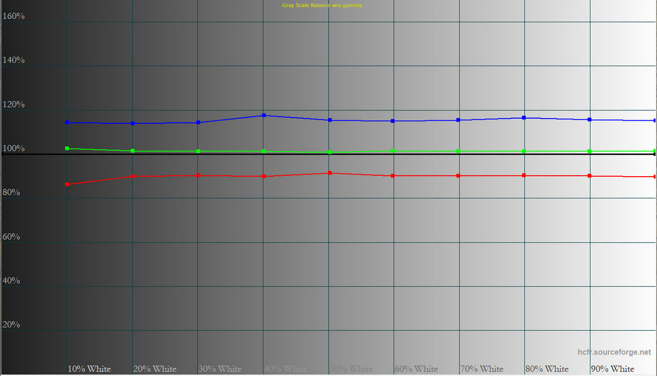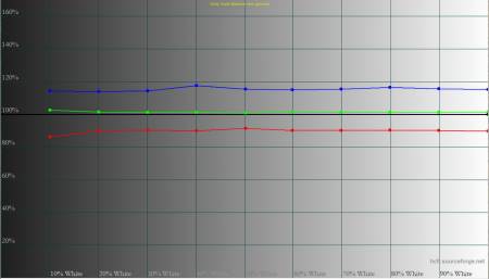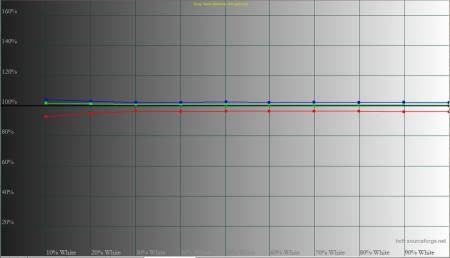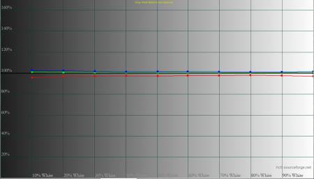 Відхилення температури точки білого від центральної ділянки знаходиться в діапазоні від –272 до +62 К. Це трохи перевищує допустимі ±250 К, але на практиці картинка лишається рівномірною — різниця майже непомітна на око.