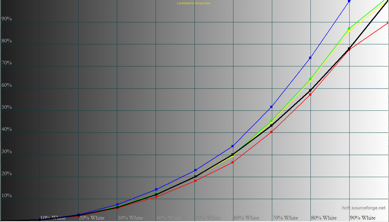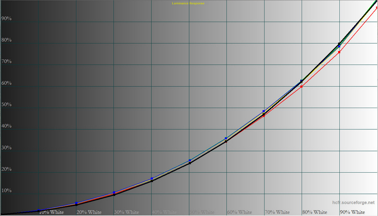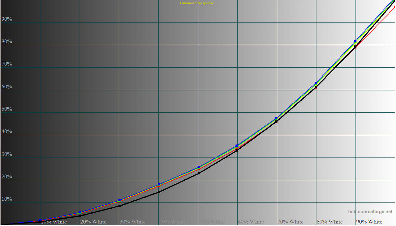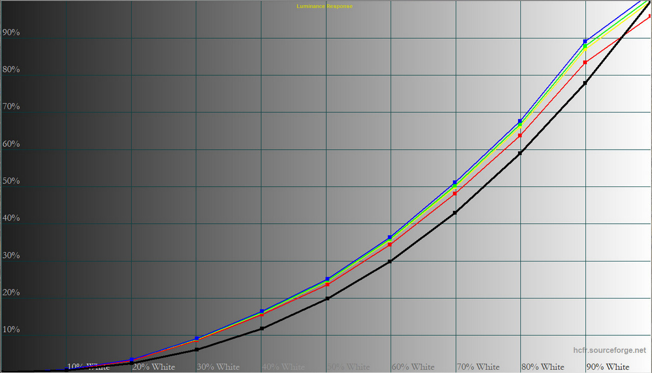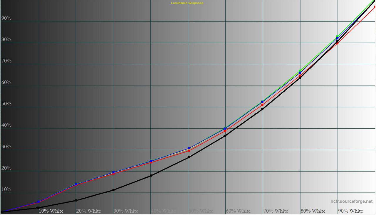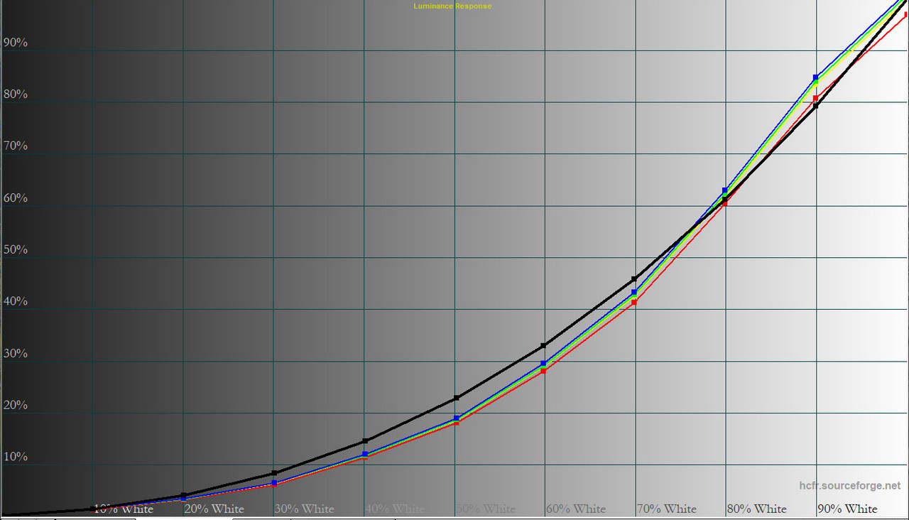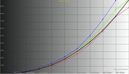 Scenery має рівну форму з невеликою нелінійністю у середніх тонах, Cinema спеціально налаштований зі зміщенням каналів для більш виразної картинки у відео.