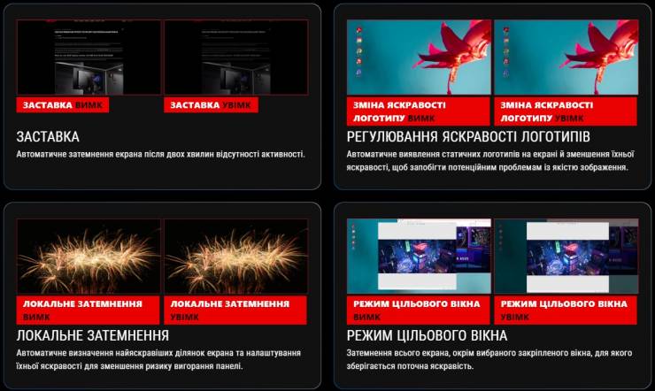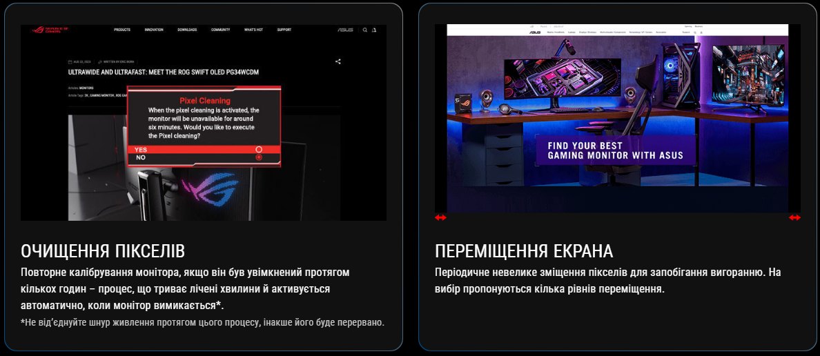 Тут є Pixel Shift, Screen Saver, Logo Dimming та автоматичний режим відновлення пікселів, і все це працює без зайвих налаштувань.