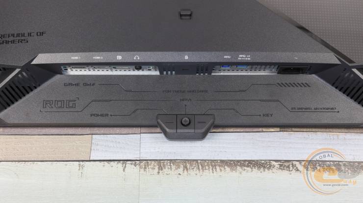 ASUS ROG Strix OLED XG27AQWMG оснащений новою Tandem WOLED Gen 2 панеллю від LG Display. Діагональ становить 26,5 дюймів, роздільна здатність — 2560×1440 пікселів, щільність — майже 111 PPI, розмір пікселя — 0,2292 мм. Максимальна частота оновлення тепер сягає 280 Гц як через DisplayPort, так і через HDMI 2.1, що є відчутним кроком уперед у порівнянні з попередніми рішеннями, де HDMI обмежувався 144 Гц.