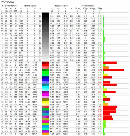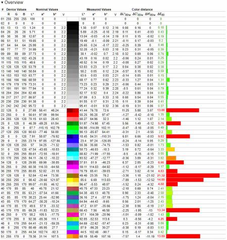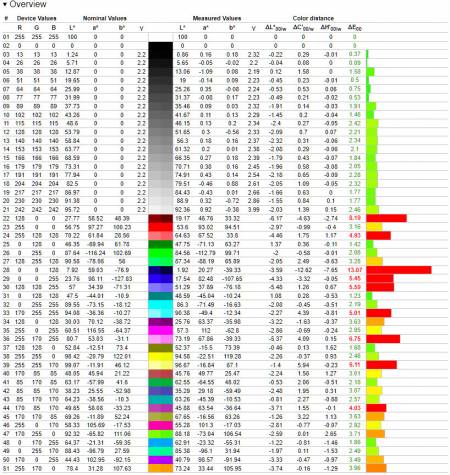 Діаграма відхилення основних кольорів та відтінків від еталонів у відкаліброваному профілі