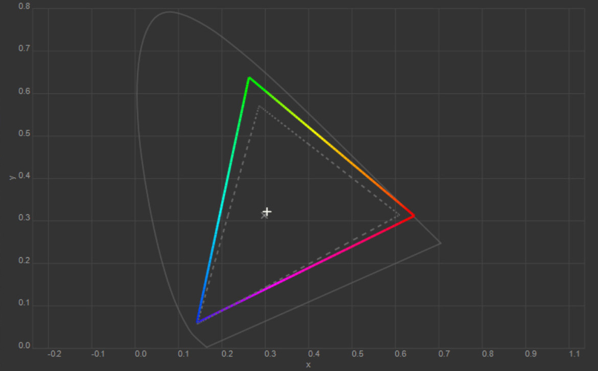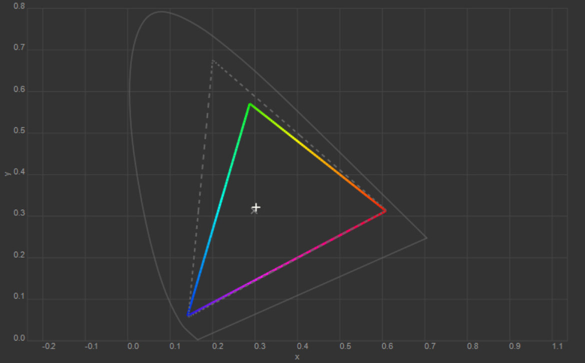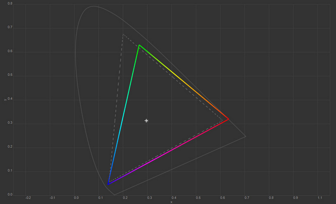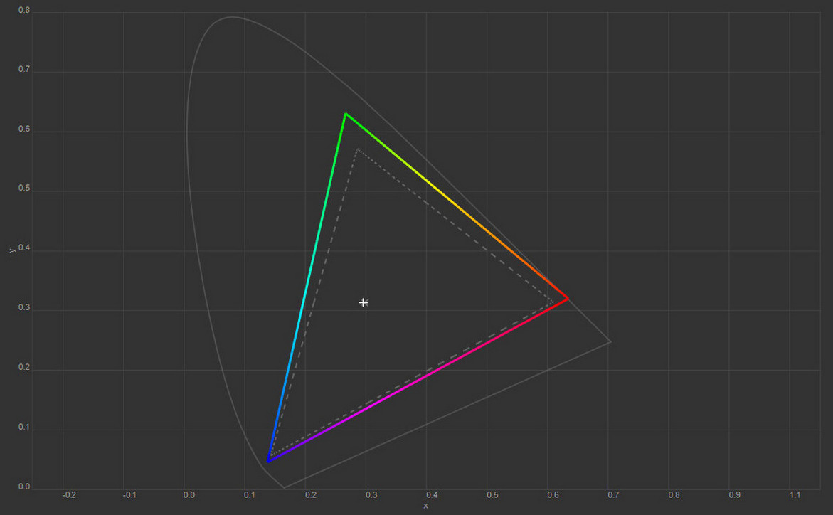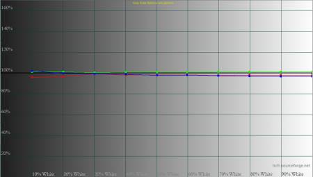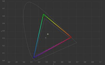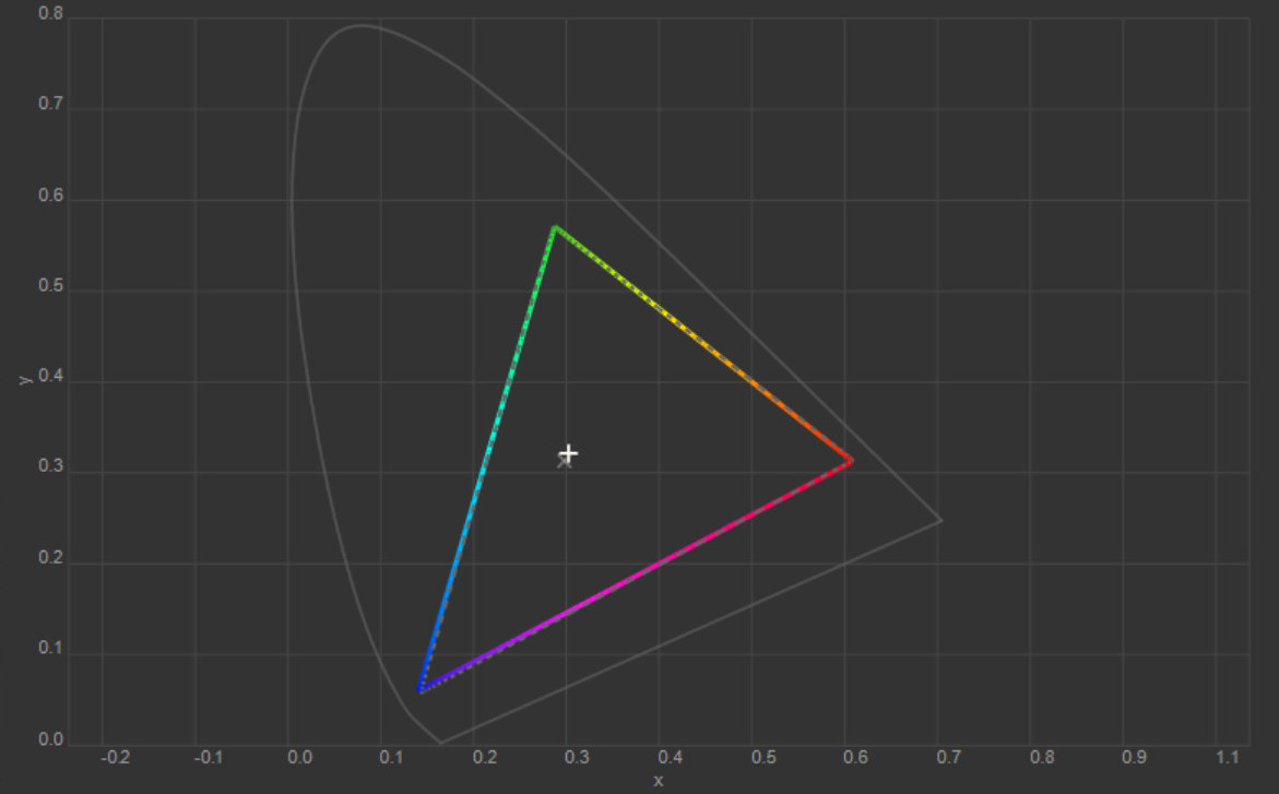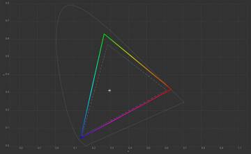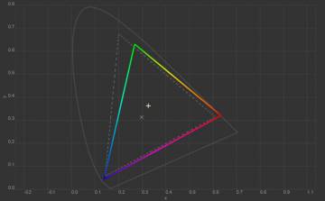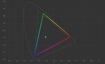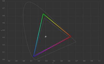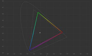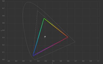 Колірна температура точки білого змістилась до 6627 К, тобто картинка стала трохи холоднішою. Охоплення sRGB залишилось на рівні 100%, Adobe RGB незначно зросло, а об’єм колірного діапазону збільшився на кілька десятих відсотка.