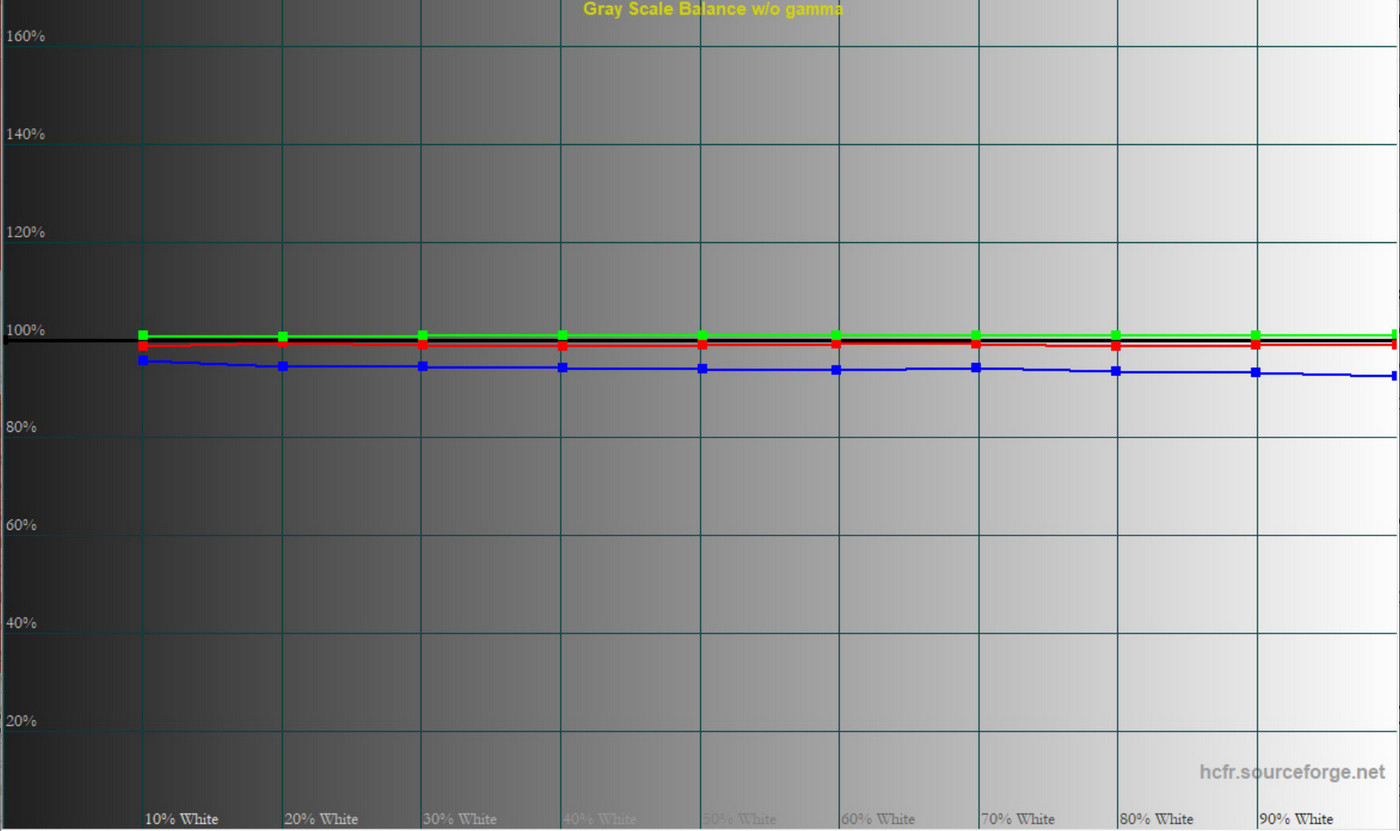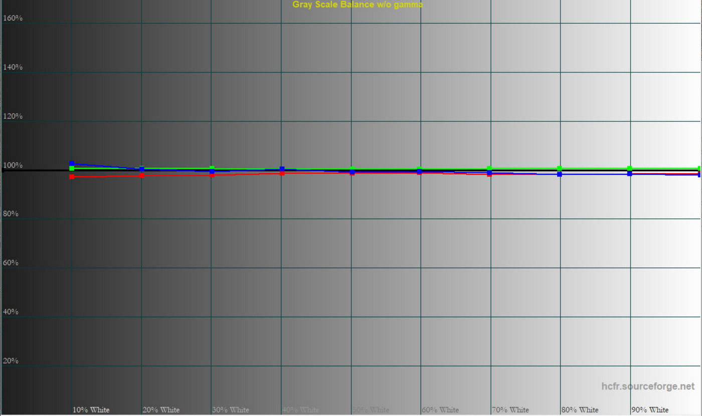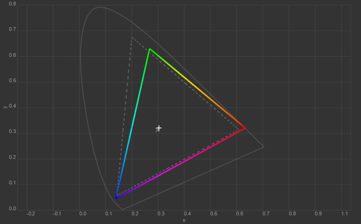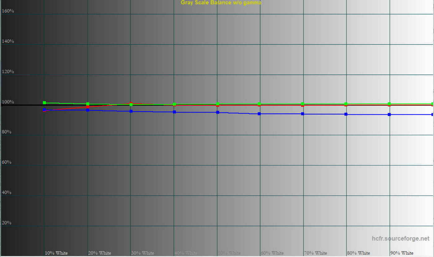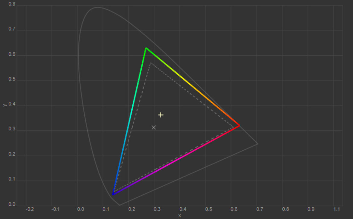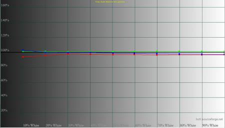 Колірна температура точки білого змістилась до 6627 К, тобто картинка стала трохи холоднішою. Охоплення sRGB залишилось на рівні 100%, Adobe RGB незначно зросло, а об’єм колірного діапазону збільшився на кілька десятих відсотка.