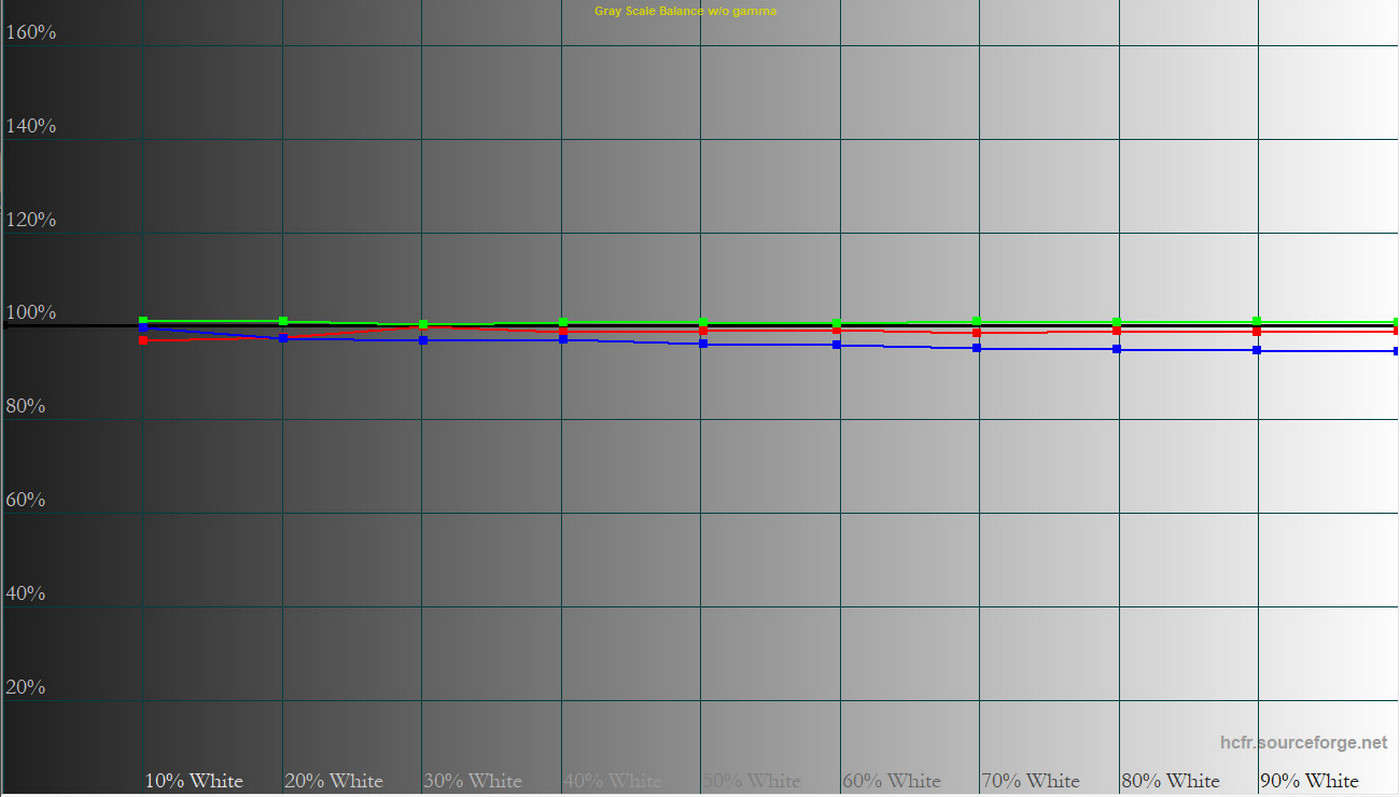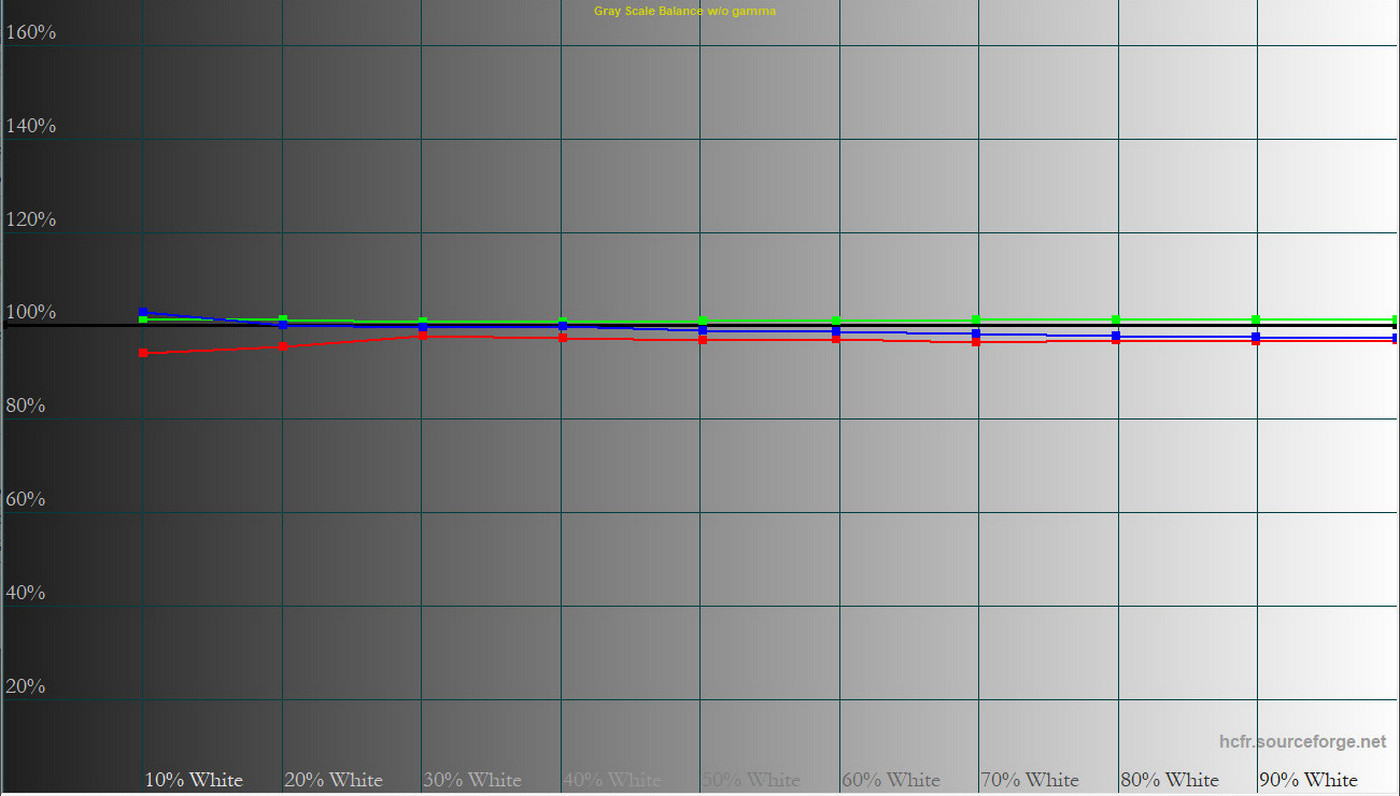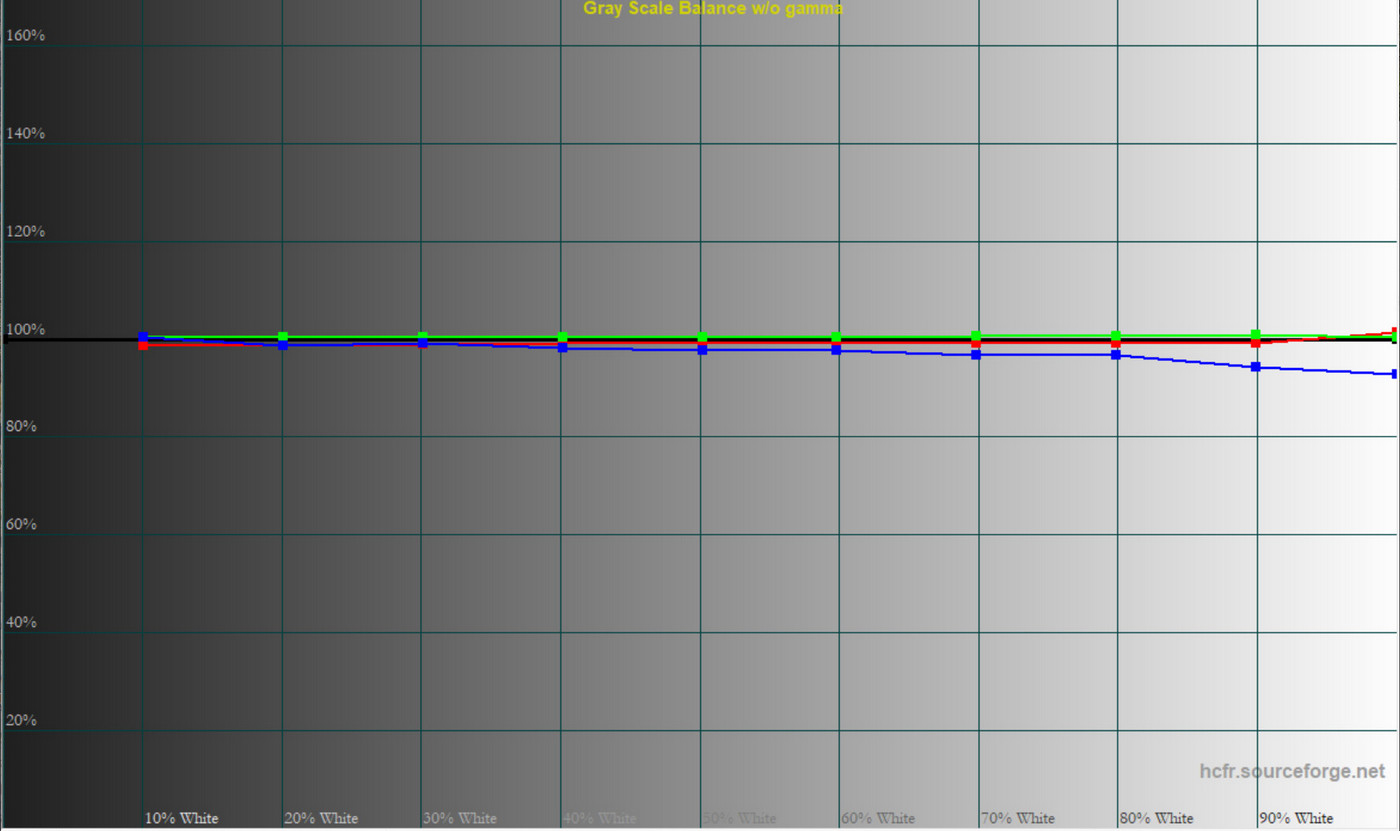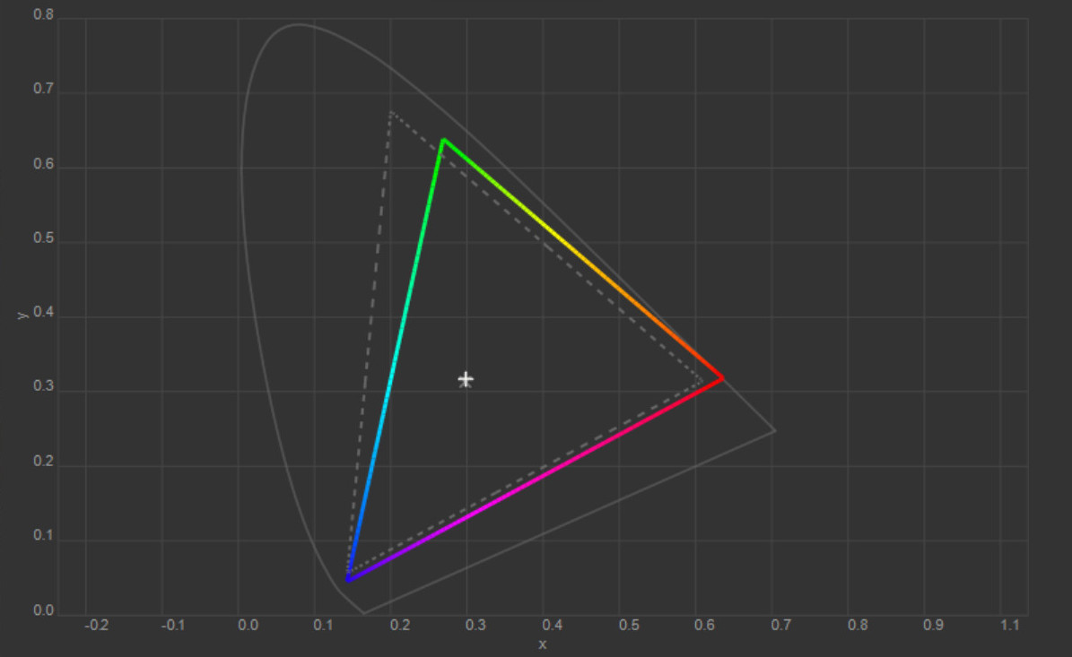 Колірна температура точки білого змістилась до 6627 К, тобто картинка стала трохи холоднішою. Охоплення sRGB залишилось на рівні 100%, Adobe RGB незначно зросло, а об’єм колірного діапазону збільшився на кілька десятих відсотка.