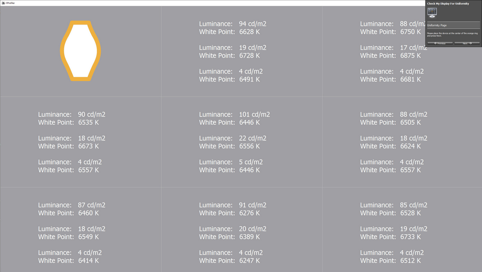 Відхилення температури точки білого від центральної ділянки становить від –199 до +319 K, що вкладається у допустимі межі ±300–350 K. Найбільше зниження зафіксовано у центральному нижньому секторі, тоді як максимальне підвищення — у правому верхньому. Загалом картинка залишається стабільною, без критичних зсувів відтінків, а плавний характер змін не створює дискомфорту. Варто враховувати, що результати стосуються конкретного екземпляра монітора, і в інших зразках можливі індивідуальні відмінності.