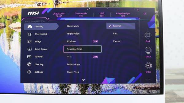 Значення розгону (Response Time) ми не змінювали — параметр залишався у режимі Normal. Саме його й варто рекомендувати для постійного використання: вже при переході на Fast з’являються легкі артефакти перерозгону, тоді як сама матриця достатньо швидка й без додаткових налаштувань. Тому оптимальним рішенням є залишати цей параметр без змін, щоб отримати чисту картинку без небажаних ефектів.