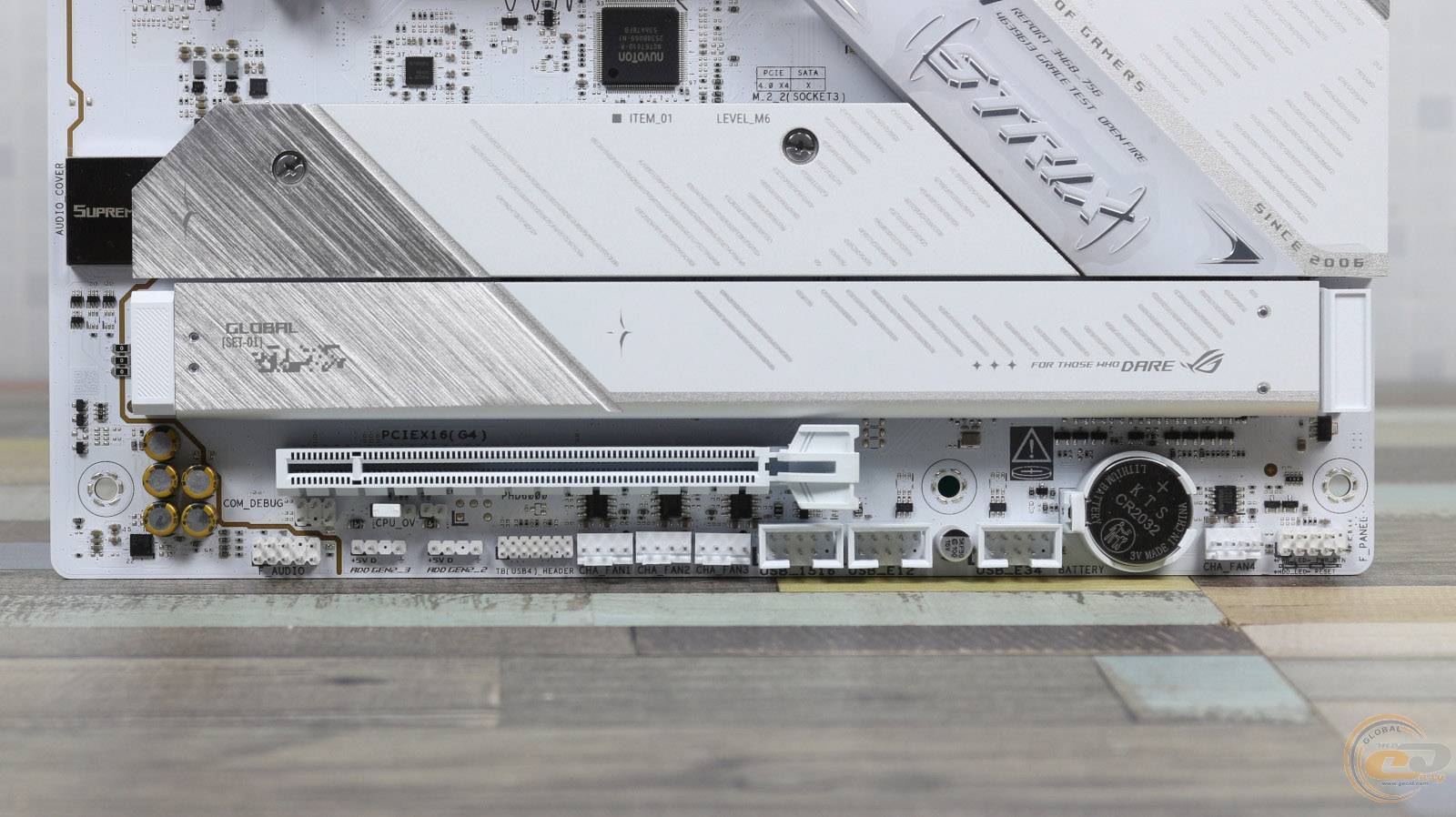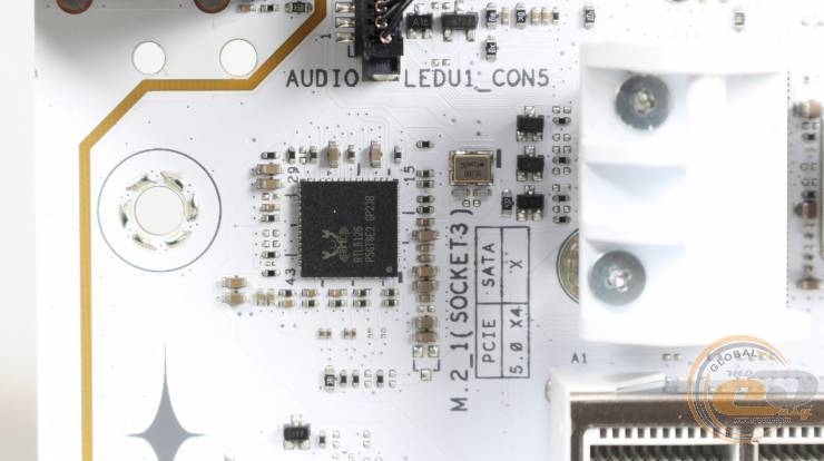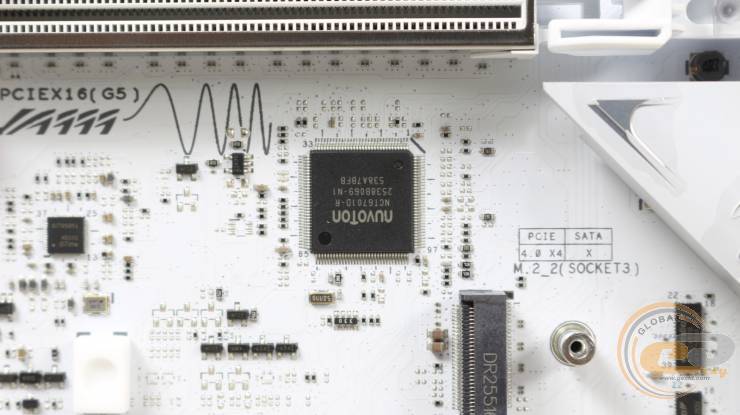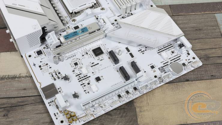 Верхній слот підсилений металевим кожухом SafeSlot та отримав 16 ліній стандарту PCIe 5.0.