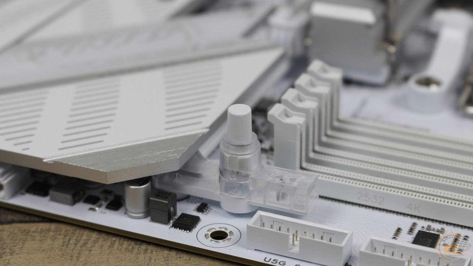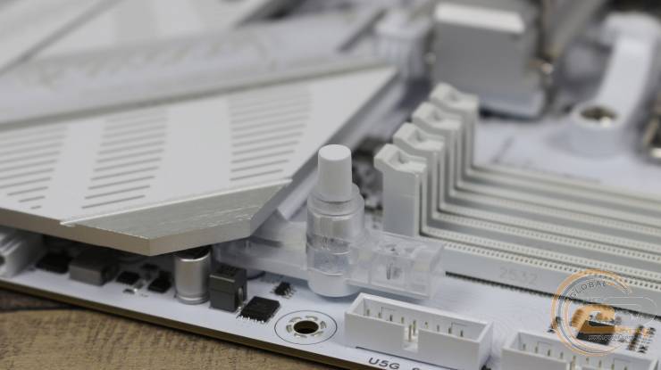 Для полегшення виймання відеокарти він оснащений механізмом з кнопкою, що зветься Q-Release. Нижній слот плати має лише 4 лінії PCIe 4.0 та буде працювати у режимі PCIe 4.0 x2 у разі використання третього слоту для M.2-накопичувачів (той, що розміщений прямо над ним). Сам слот M.2_3 при одночасному задіянні його та вищезгаданого PCI Express 4.0 x16 (x4) теж перейде у режим PCIe 4.0 x2.