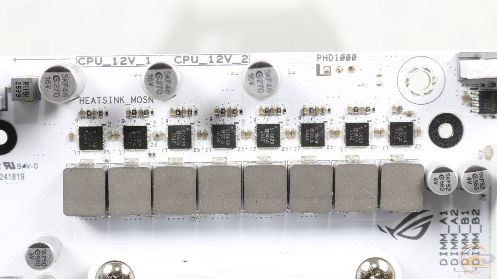 Елементна база плати складається з твердотільних конденсаторів, феритових дроселів, а також вісімнадцяти мікросхем Vishay SiC629 (80 А).