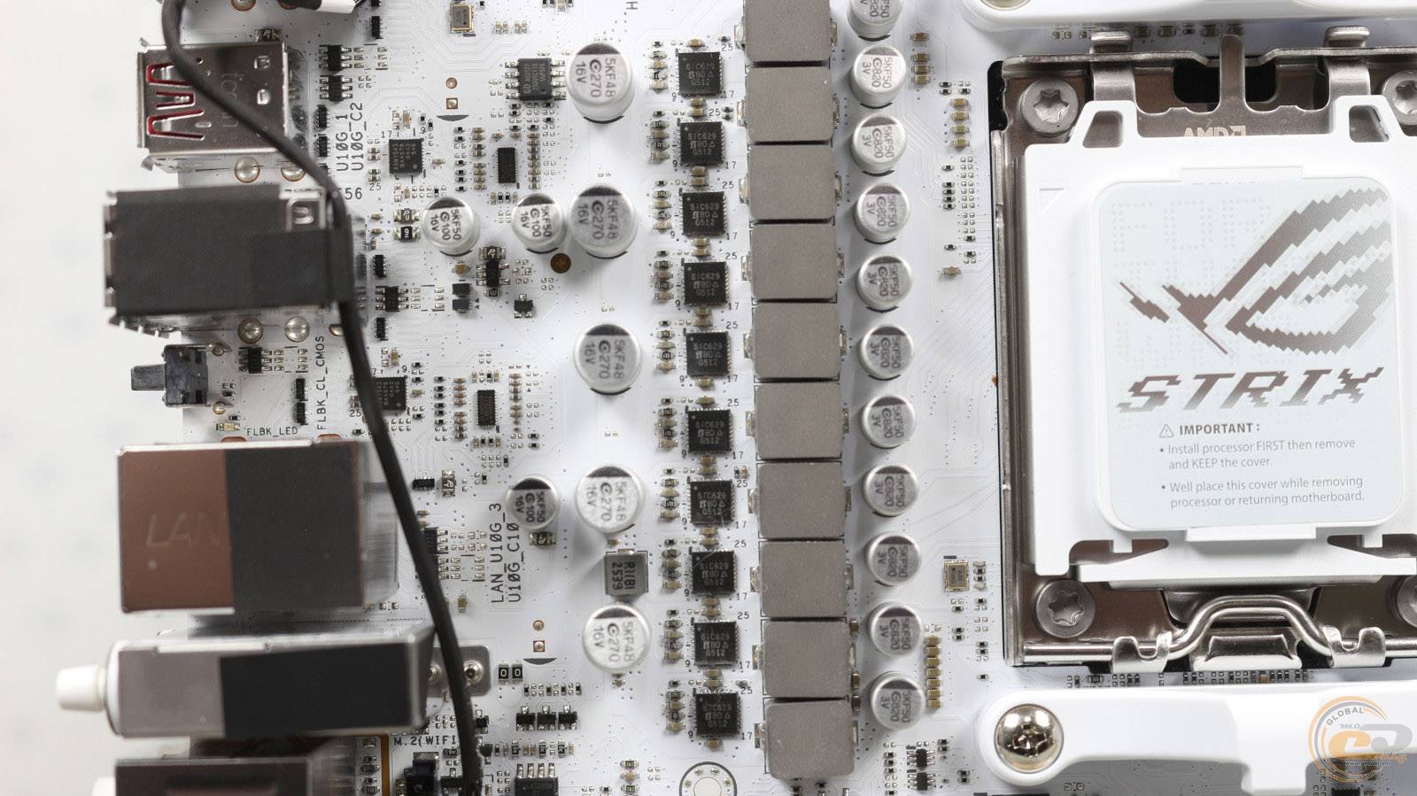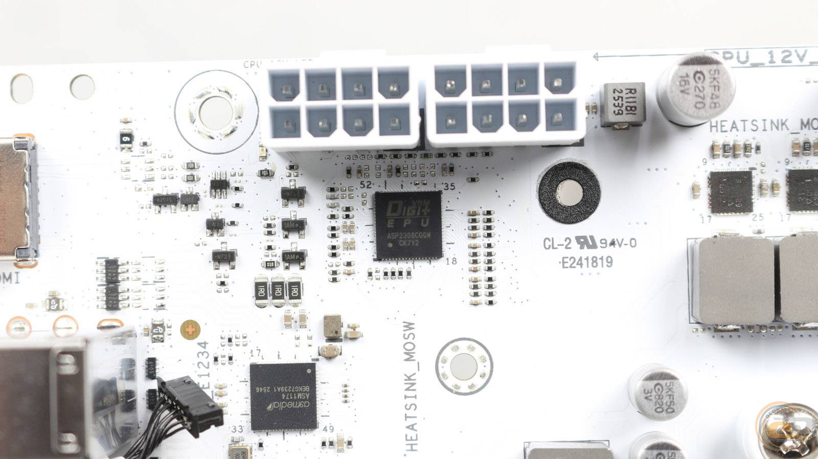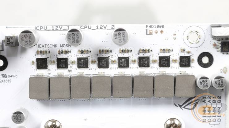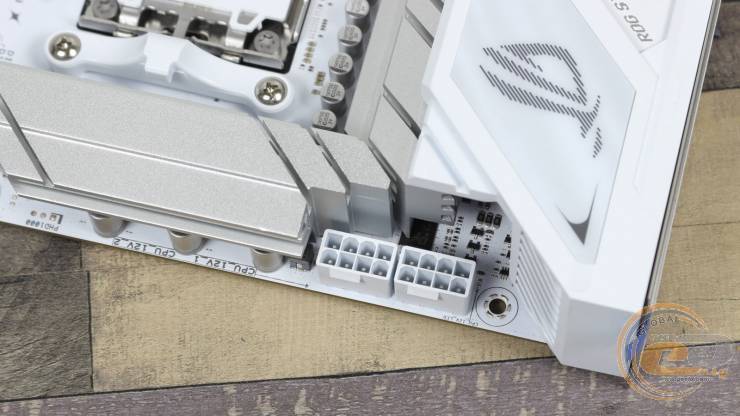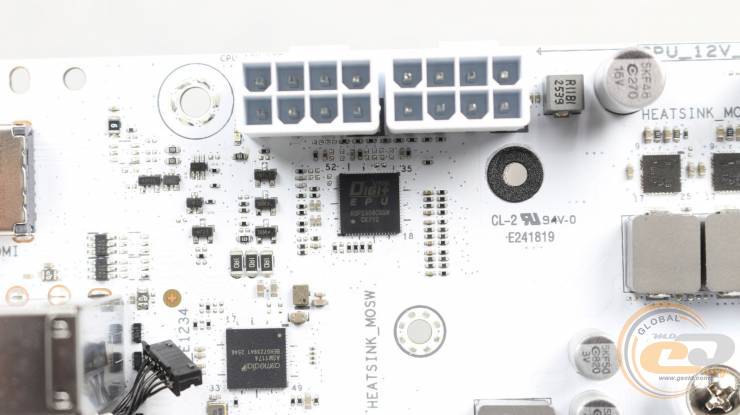 Два 8-контактні роз'єми ATX12V дозволять користувачу використовувати з цією платою будь-які топові рішення з лінійок AMD Ryzen 7000, AMD Ryzen 8000 та AMD Ryzen 9000 без обмежень у енергоспоживанні. Поруч розмістився червоний індикатор, що загориться у разі некоректного під’єднання до них.
