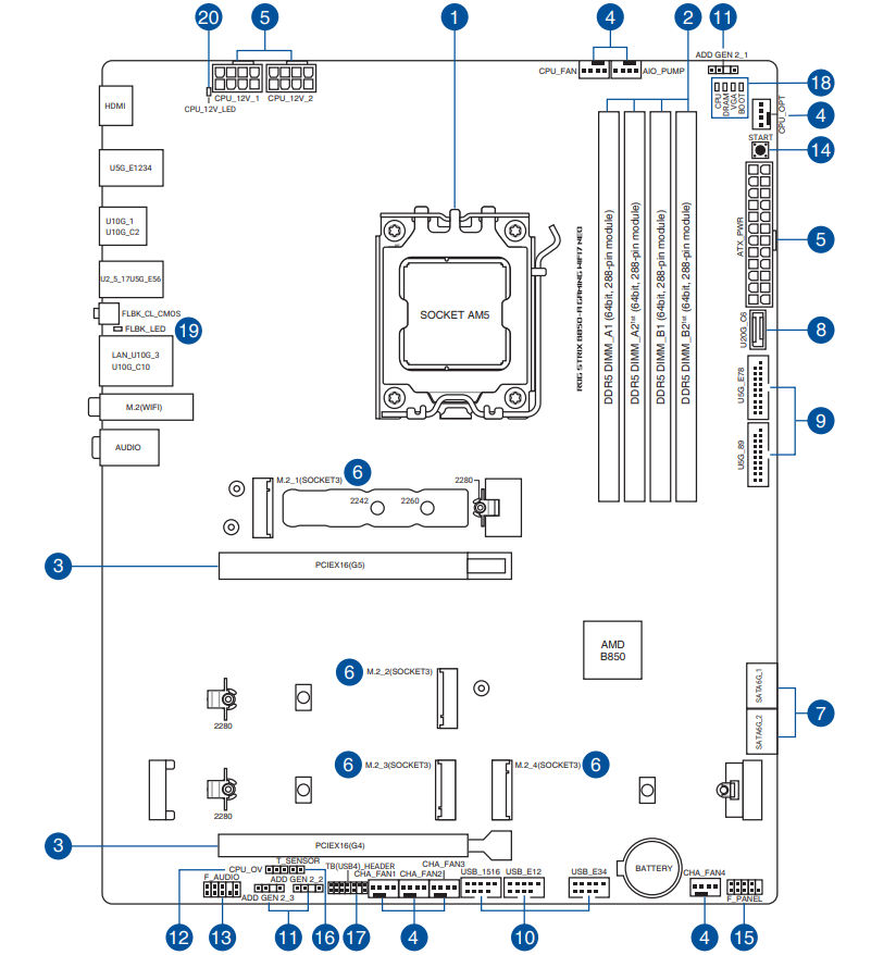 Для розширення функціональності ASUS ROG STRIX B850-A GAMING WIFI7 NEO пропонує користувачу два слоти: