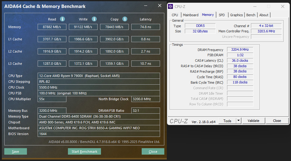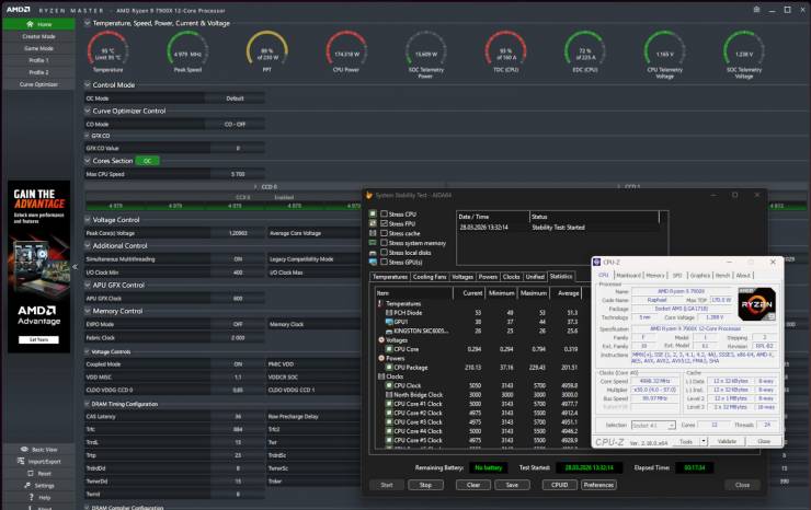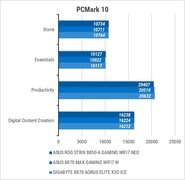 Система з материнською платою ASUS ROG STRIX B850-A GAMING WIFI7 NEO без проблем пройшла вищезгадані тести, забезпечивши стабільну роботу AMD Ryzen 9 7900X.