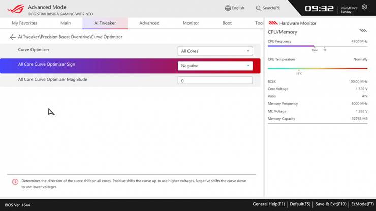 - «All Core Curve Optimizer Sign» був змінений на «Negative»;