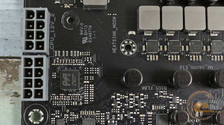 Підсистема живлення процесорних ядер керується ШІМ-контролером Digi+ ASP2442GQW.