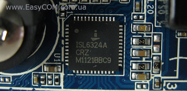 Сам перетворювач заснований на ШІМ-контролері ISL6324. Для живлення GIGABYTE GA-780T-D3L призначені основний 24-х і додатковий 4-контактний роз’єми.