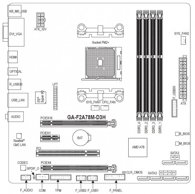 Специфікація материнської плати GIGABYTE GA-F2A78M-D3H: