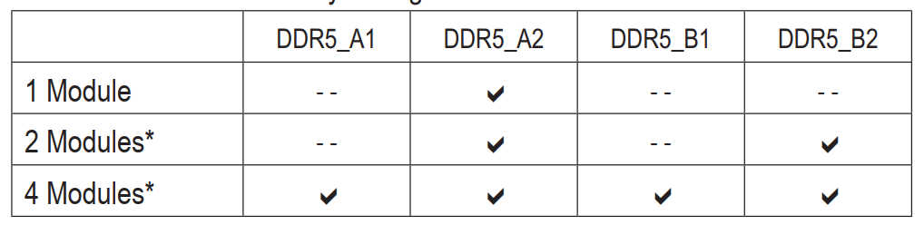 Згідно з посібником користувача, для двох планок пріоритетними є слоти A2 та B2, а для однієї — A2.