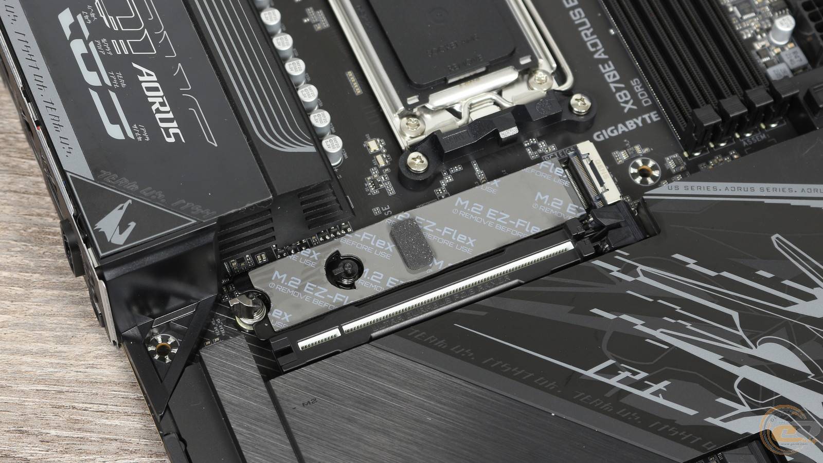 Високошвидкісна підсистема зберігання інформації включає в себе чотири SSD формату M.2, два з яких відповідають стандарту PCIe 5.0. Хоча тут таки закралося обмеження — при активності тильних портів USB 4 другий роз'єм працюватиме в режимі PCIe 5.0 x2, а не x4. Решта два слоти використовують чипсетні лінії PCIe 4.0 x4.