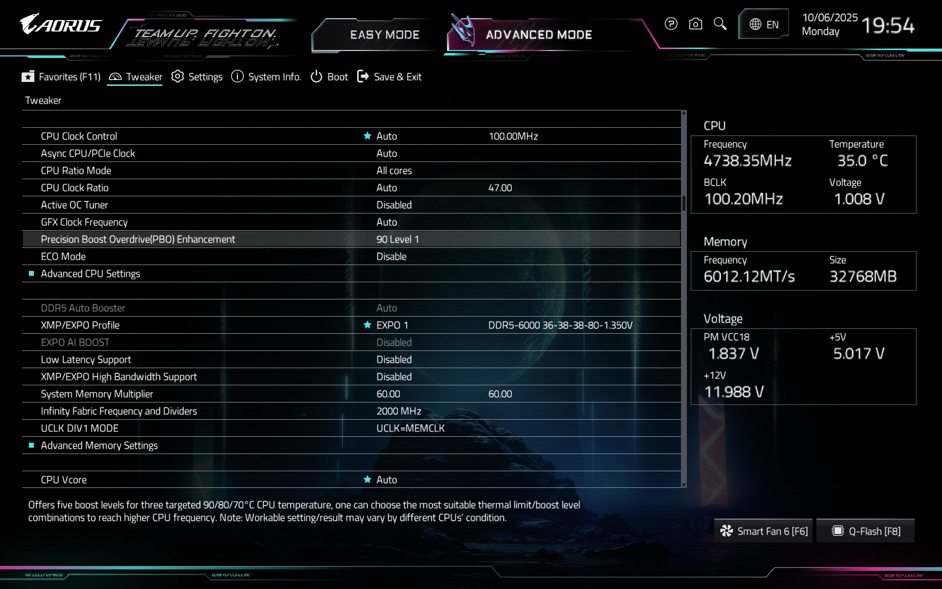 В якості останньої ми встановили ліміт критичної температури на рівні 90°C, обравши відповідний пункт у BIOS: Precision Boost Overdrive (PBO) Enhancement – 90 Level 1.
