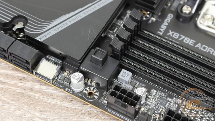 Поруч із нижніми фіксаторами видно кнопку, яка дозволяє одним натисканням витягнути відеокарту з верхнього слоту PCIe.