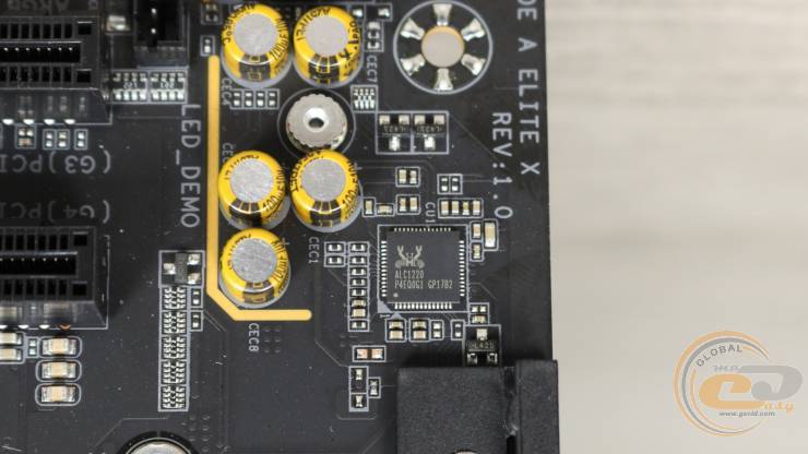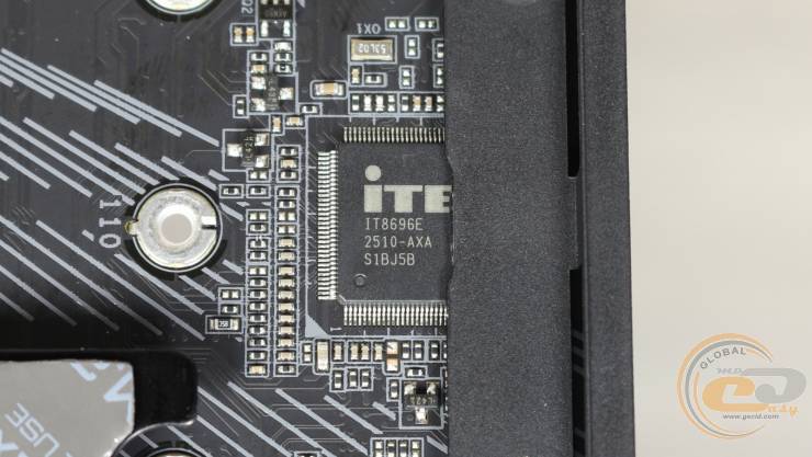 А в якості мультиконтролера тут використовується чип ITE IT8696E, розпаяний трішки лівіше від трьох слотів M.2.