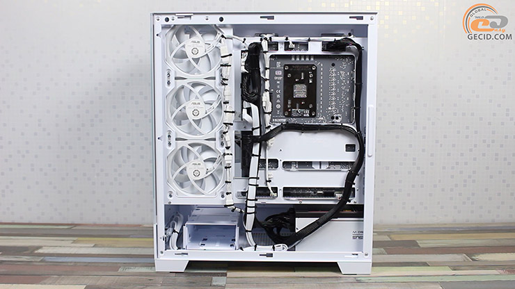 Подібний підхід помітно спрощує складання: ніяких танців з прокладанням кабелів через отвори шасі, боротьби з обмеженим простором біля верхньої кромки плати чи під кулером. Усе зручно підключається з одного боку, а інша залишається максимально «чистою» та акуратною. До того ж, завдяки суцільній металевій панелі корпусу кабельний хаос можна навіть не маскувати.