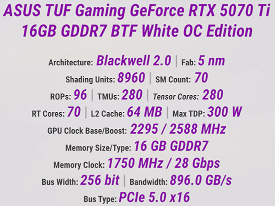 Підтримує таку технологію в цій збірці ASUS TUF Gaming GeForce RTX 5070 Ti 16GB GDDR7 BTF White OC Edition.