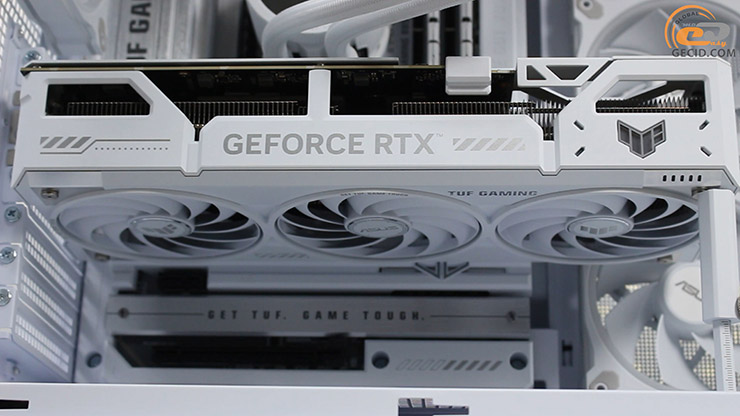 Система охолодження тут достойна і базується на трьох вентиляторах Axial-Tech з металево-пластиковим кожухом. ARGB-підсвітка виконана в мінімалістичному стилі — лише логотип TUF на торці.
