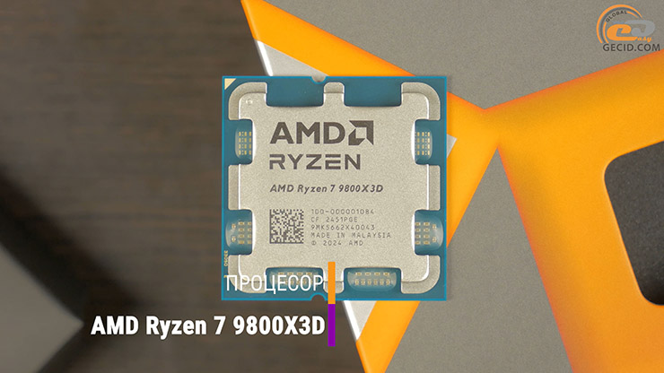 У ролі процесора у даному ПК використовується один із найбажаніших геймерських представників лінійки Ryzen 9000 — AMD Ryzen 7 9800X3D. Він побудований на архітектурі Zen 5 і має 8 ядер у 16 потоків, а головною «фішкою» є технологія 3D V-Cache з додатковими 64 МБ кеш-пам’яті третього рівня. Завдяки цьому чіп забезпечує відмінну продуктивність у сучасних іграх і деяких ресурсоємних завданнях.