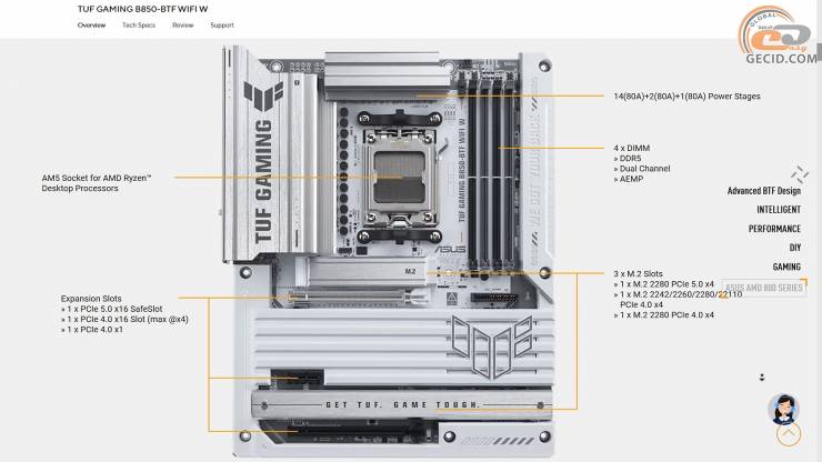 Апаратна частина теж не підкачала: актуальний чипсет AMD B850, надійна 14+2+1-фазна підсистема живлення, довговічна елементна база, солідні радіатори охолодження та повноцінний набір сучасних інтерфейсів, включно з 20-гігабітним Type-C і WiFi7, роблять цю модель не лише красивою, але й функціональною основою для потужної геймерської збірки.