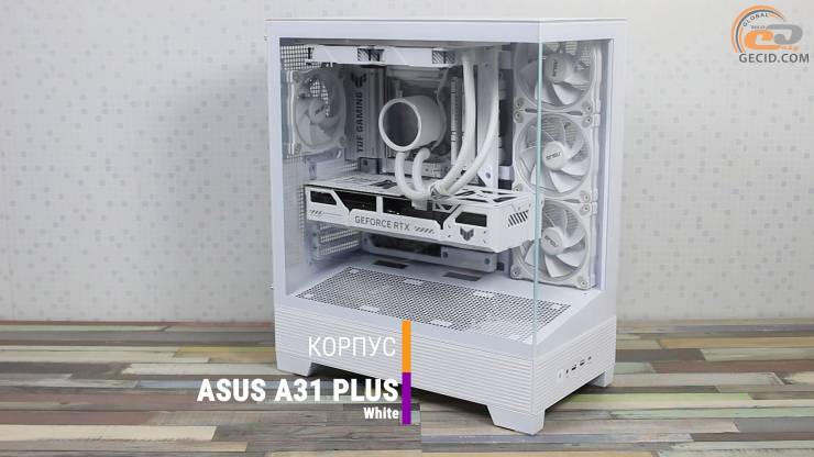 Утримує всю систему всередині панорамний корпус ASUS A31 PLUS White, який вирізняється серед аналогів тим, що зберіг класичну однокамерну конструкцію, але при цьому повністю підтримує концепцію BTF усіх версій. Такий підхід дозволяє поєднати сучасний тренд на приховане підключення з перевіреною ергономікою звичайного шасі.
