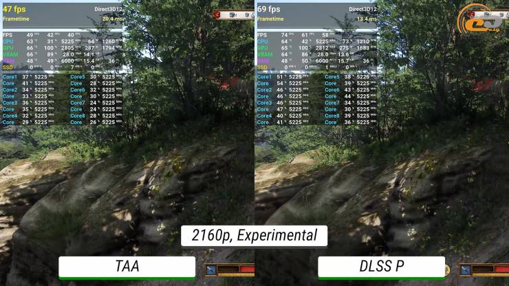 З DLSS місцями частота кадрів також знаходиться на межі, але загальний результат усе одно комфортний і дозволяє досліджувати старовинні території з максимальним поглибленням.