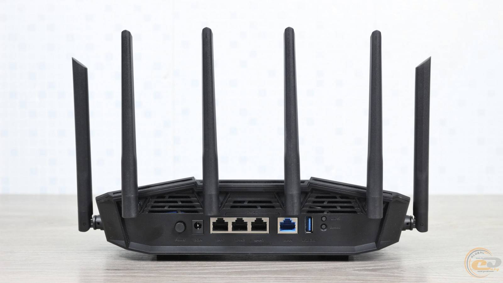 Для під’єднання до інтернету в ASUS TUF Gaming BE9400 передбачено 2,5-гігабітний WAN-порт. Три додаткові LAN-порти з такою ж пропускною здатністю дозволять підключити ПК, NAS-сховище чи інші пристрої. Порт LAN1 позначений як ігровий (Gaming Port), адже він має найвищий пріоритет передачі даних. До речі, усі мережеві роз’єми отримали металевий захист. Також тут є USB 3.2 Gen 1 та роз’єм живлення.